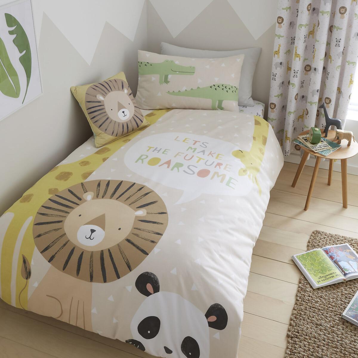 This duvet set is a fun and practical choice for any child’s room, especially those with a playful or nature-inspired theme. I love how the bold animal illustrations add a touch of whimsy while remaining versatile enough to complement a range of colour schemes-from neutral to colourful setups. It works really well in contemporary or Scandinavian-style interiors that focus on simplicity and fun. For styling tips, consider pairing it with plain or subtly patterned curtains to let the duvet stand out, and add a few coordinating cushions or plush toys for a cosy, inviting vibe. Additionally, since it’s labeled as easy care, it’s perfect for busy households wanting fuss-free maintenance without compromising on style.
