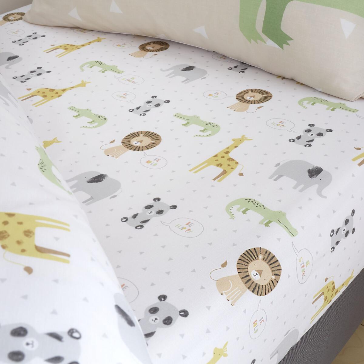 In a hand drawn Scandi style, this fun design featuring charming animals have positive messages for the happy future, a perfect addition to your child's safari themed room. Made from 52% Polyester 48% Cotton. Machine Wash at 40 Degrees. Junior Fitted Sheet - 70x140cm with a 15cm box depth & Single Fitted Sheet- 90x190 cm with a 25 cm box depth. This product will be dispatched by one of our trusted suppliers. You’ll be contacted by their selected courier about your delivery.
