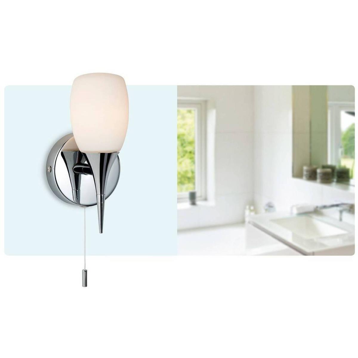 Your bathroom has never had it so good! The Robano 1-Light Chrome and Opal Glass Switched Bathroom Wall Light is the epitome of elegance. From the shining finish to the graceful shape, this fixture offers wonderful practical light as well as contemporary style.