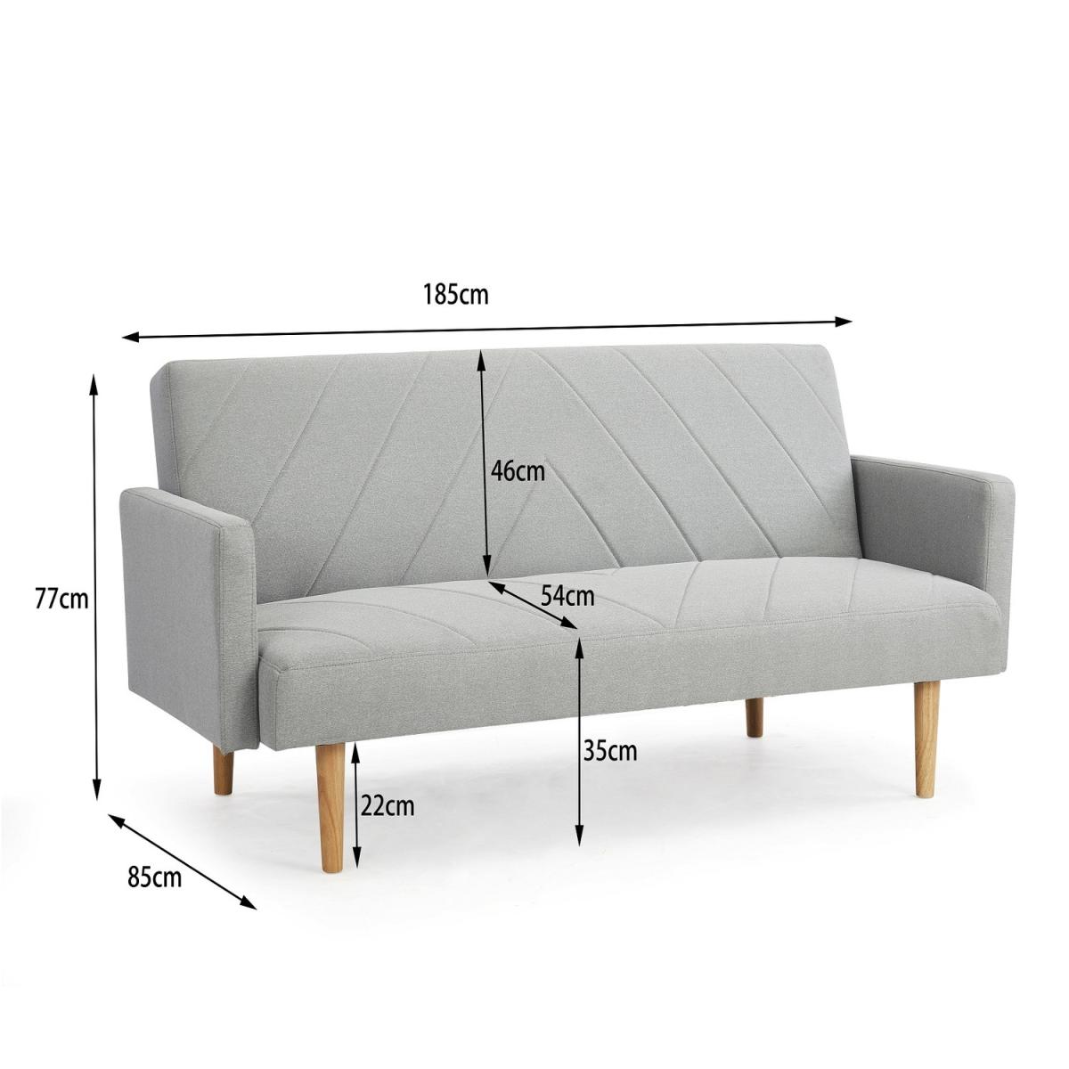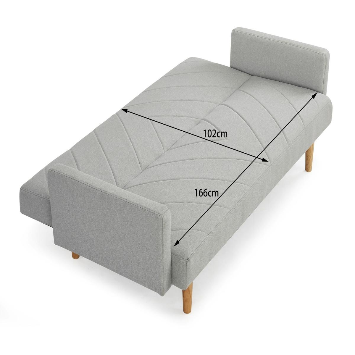 Introducing ROBBIE, a 3-seater fabric sofa bed available in blue, light grey and dark grey fabric. This sofa bed is a contemporary choice for those who need their living space to have added functionality. ROBBIE features a padded seat and backrest with a chevron pattern and stands on tapered wooden legs, with clean lines, sleek track armrests and simplicity in mind. Convertible design - this sofa bed has a simple clic-clac mechanism that allows it to swiftly and simply transform from a sofa to a recliner to a bed, making it ideal for overnight guests. This sofa bed cannot be freely positioned in your room. The back of this sofa bed is upholstered in a black woven fabric that does not match the colour of the sofa bed fabric. Due to differences in lighting and screen resolution on laptop, desktop, and mobile devices, some fabrics may appear somewhat different in person. To get the most out of your sofa bed we recommend gently cleaning with the upholstery attachment of your vacuum cleaner or using a soft hand brush once per week. You might need to screw the legs to the underside of some of our sofa beds since they don't all have pre-drilled holes. All of our sofa beds come with an easy-to-follow assembly guide. Delivered by our friendly couriers on a 2-man delivery service within 3-7 working days. The courier will deliver to a room of your choice.