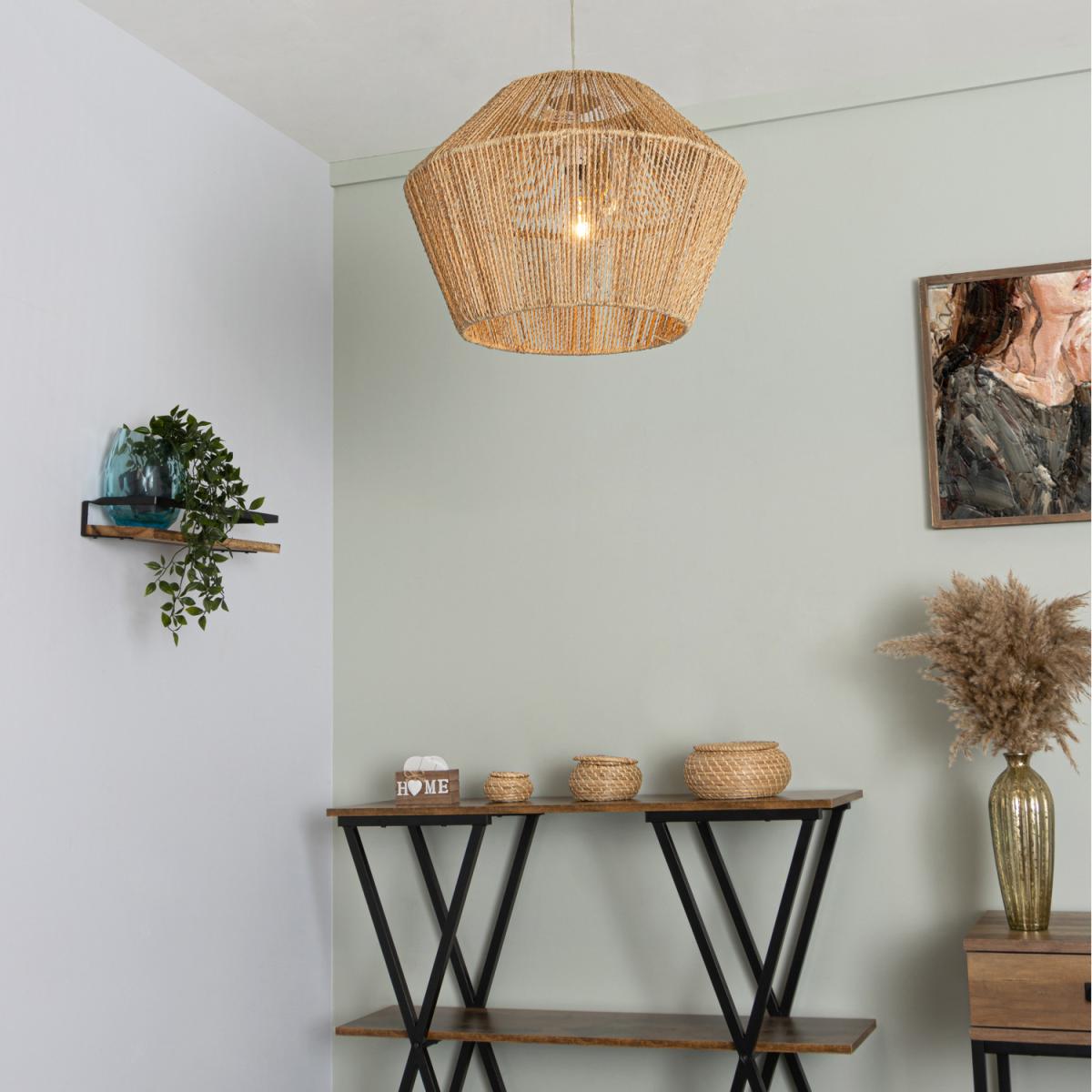 Get the boho look for your home with the Robbo Rattan Easy-Fit Light Shade in Natural. This stylish woven rattan shade is easy to install, where you simply attach it to any pre-existing pendant light fitting, making it a great choice for homeowners and renters alike. The neutral tone of the rattan shade allows it to suit most interiors and is ideal for most rooms. The beautifully shaped shade uses woven string which allows the light to softly penetrate through the gaps, effectively illuminating your space.