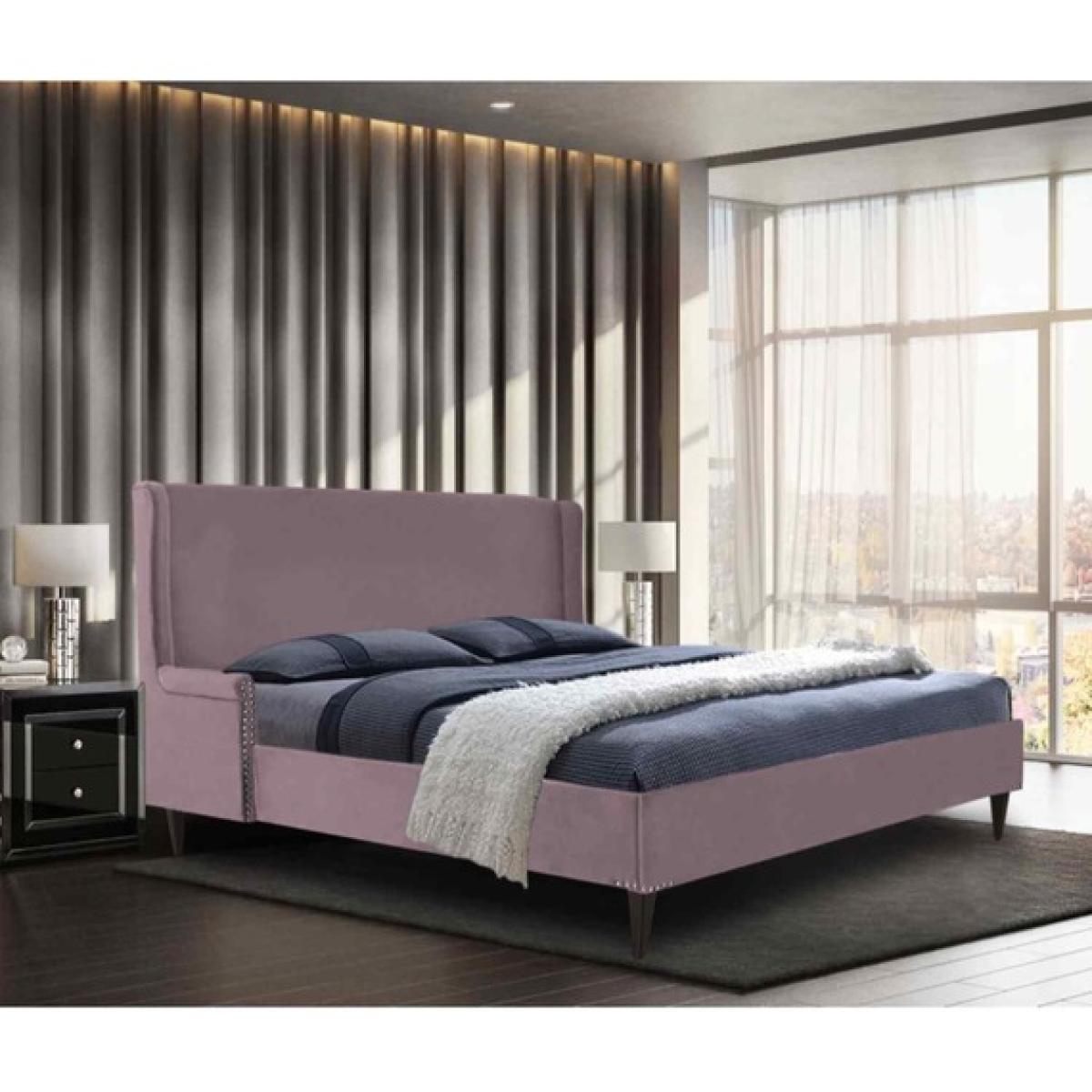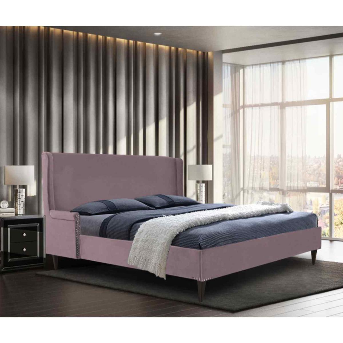 Robert Upholstered Plush Velvet Bed Frame - Pink / King Size