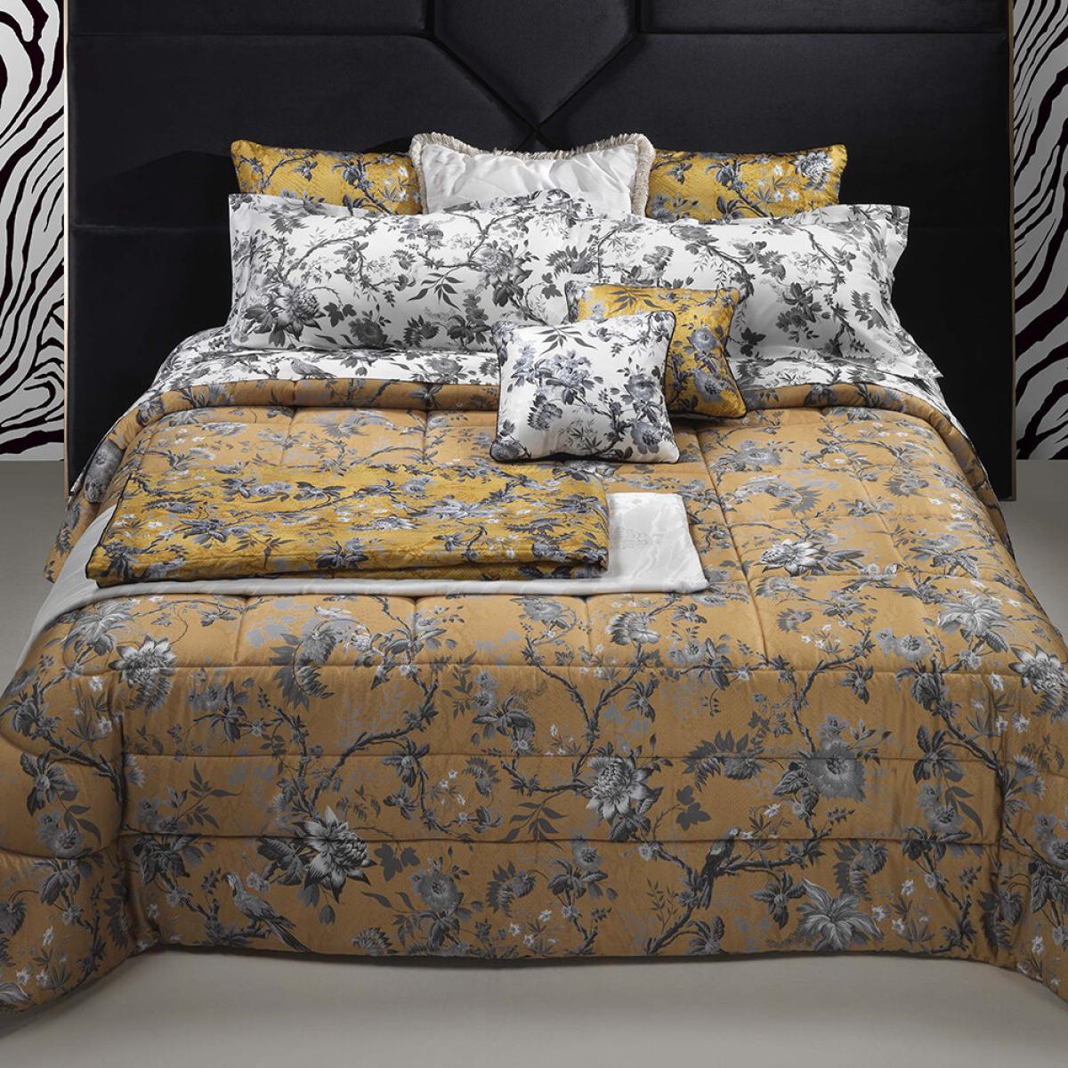 Relax in luxury at home with this China Birds bed set from Robeto Cavalli. On a warm gold crocodile print background, this bed set features an ornate floral design in cool silver hues. Including pillowcases, a duvet cover and a flat sheet, it's made from 100% cotton sateen with a silky 300 thread count. Key features: * Material: 100% cotton sateen * Set includes: * Duvet cover: 240x220cm * Flat sheet: 270x290cm * 2 x pillowcases: 50x70cm * Luxurious 300 thread count * Ornate floral design * In cool silver shades * On a gold crocodile print background * Button closure * Machine washable