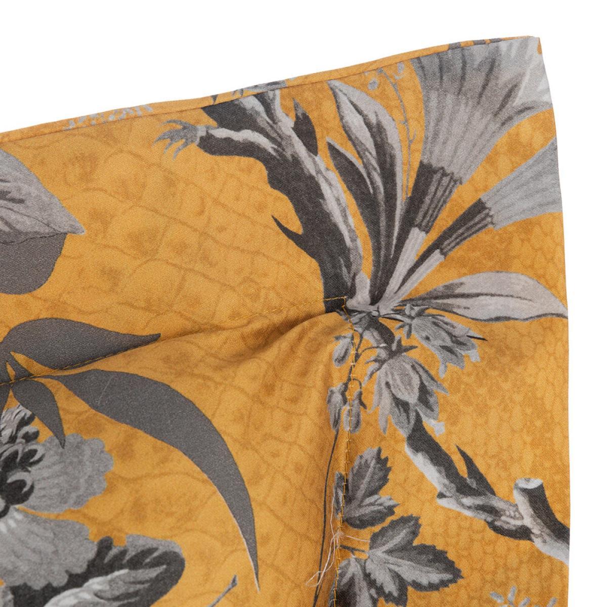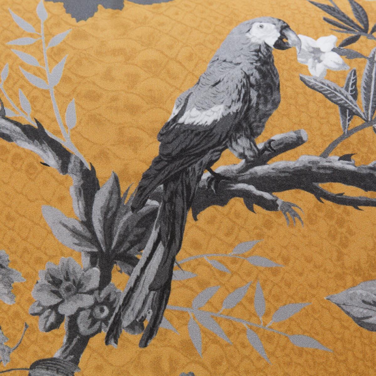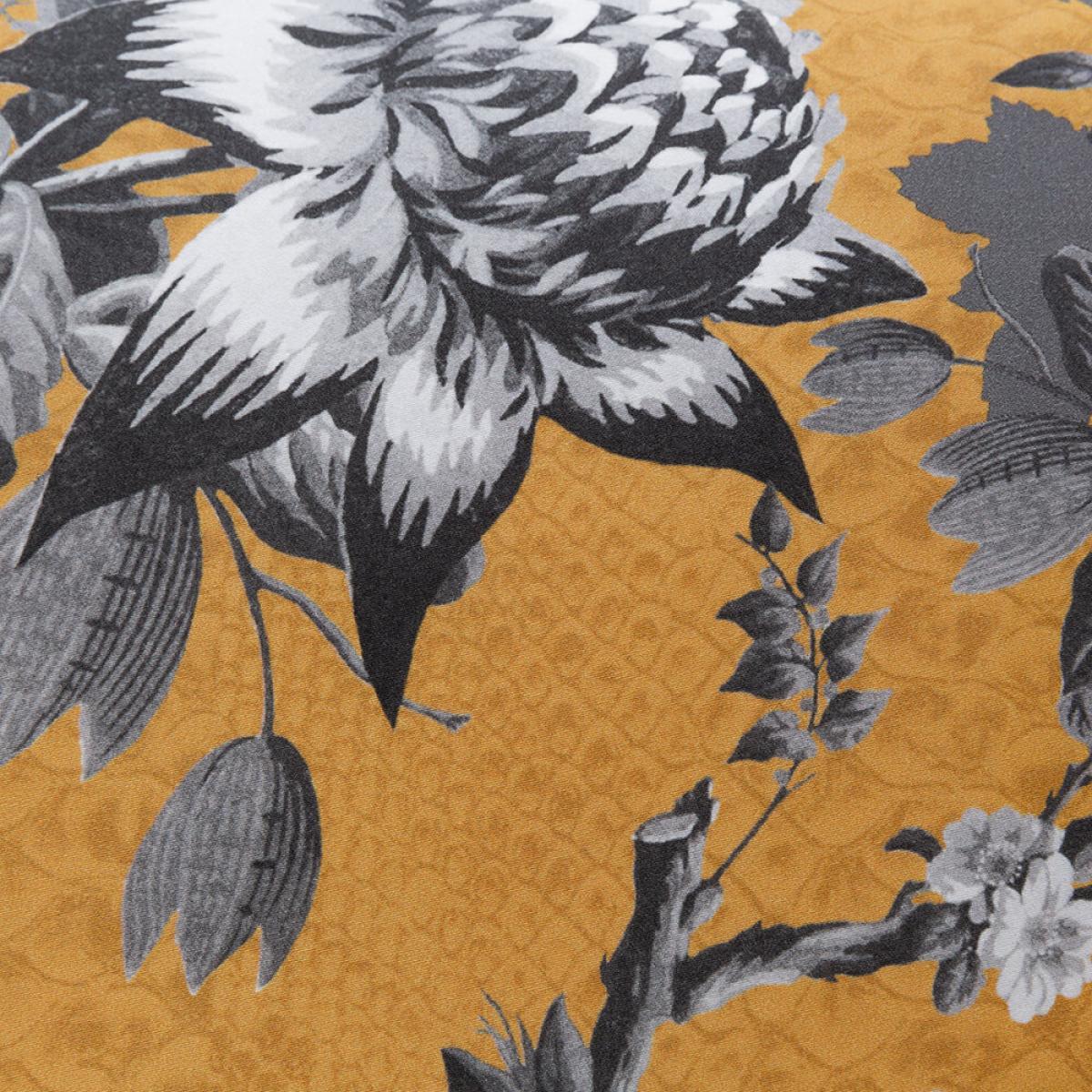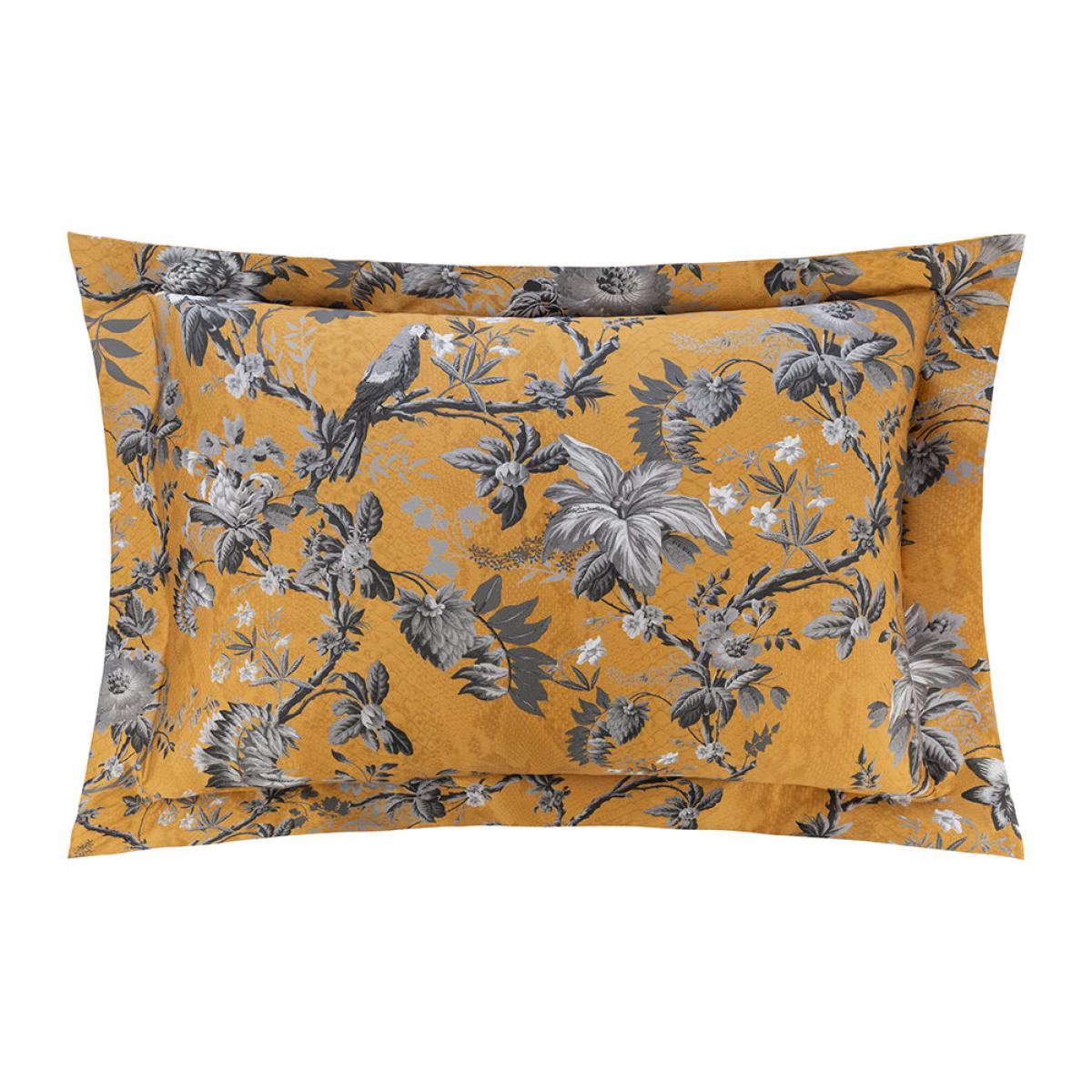 Relax in luxury at home with this China Birds bed set from Roberto Cavalli Home. On a warm gold crocodile print background, this bed set features an ornate floral design in cool silver hues. Including pillowcases, a duvet cover and a flat sheet, it’s made from 100% cotton sateen with a silky 300 thread count.