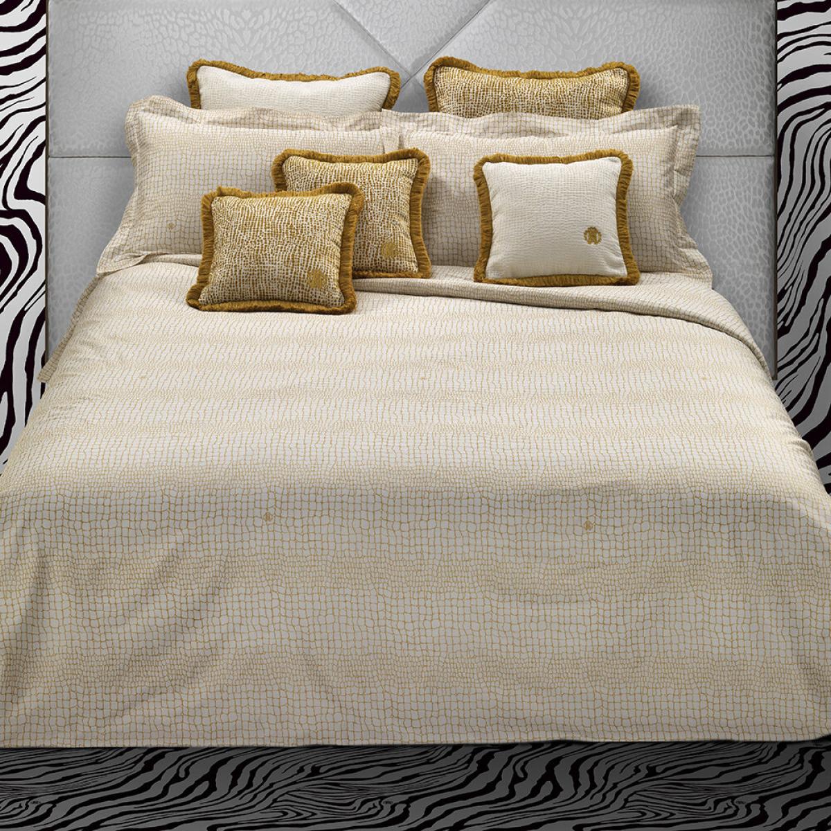 Add depth to your bedroom with this Coco Bet Set from Roberto Cavalli. Staying true to Cavalli's signature animalier spirit, the gold design features a sleek snake scale print. Take your bed to the next level by layering the matching bedspread over the top. Key features: * Set of 4 * Material: cotton * Set includes: * Two pillowcases: 50x70cm * Fitted sheet: 270x290cm * Duvet cover: 240x220cm * Gold colour * Snake print * Made in Italy