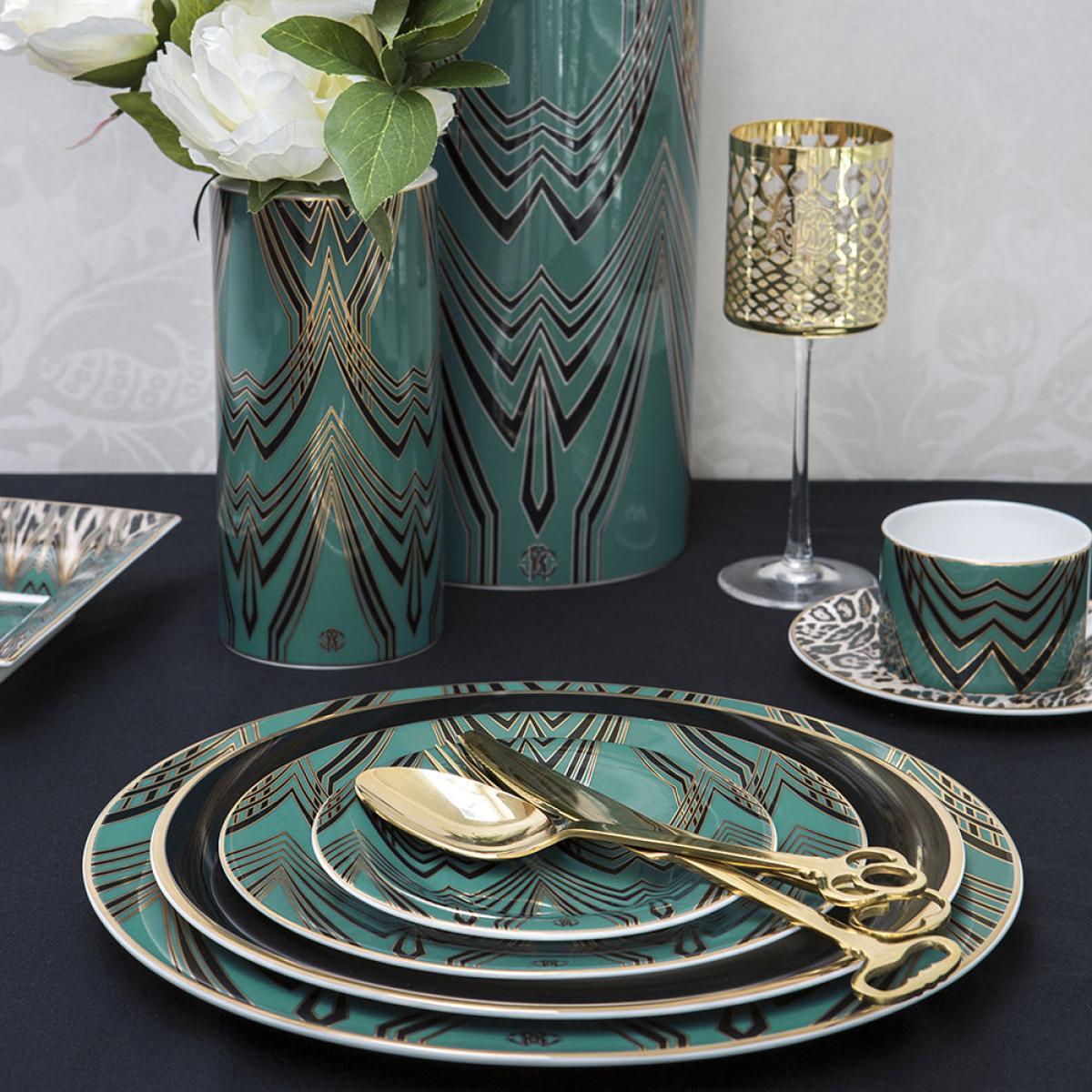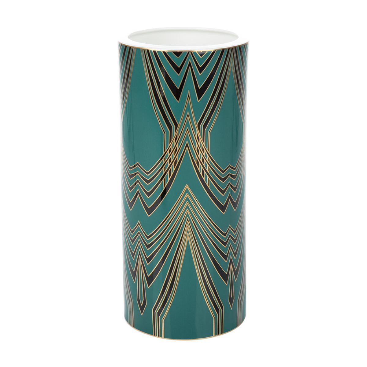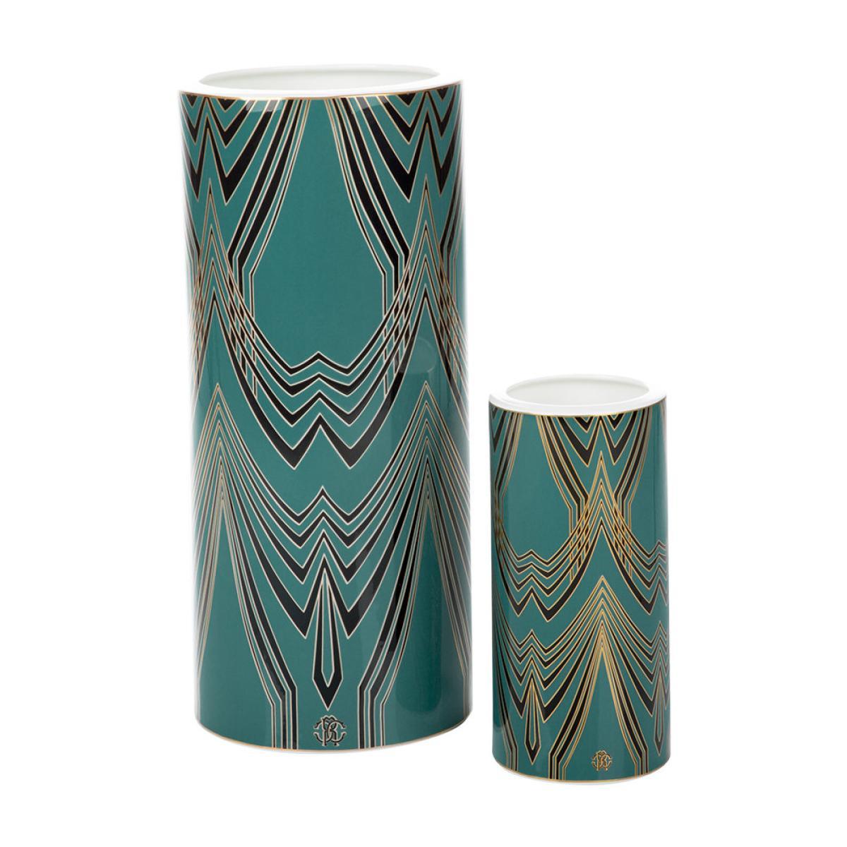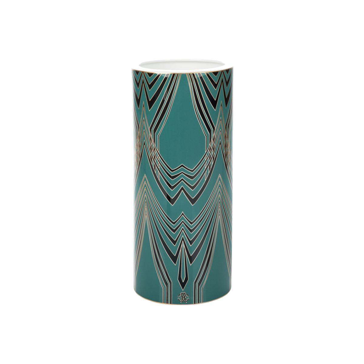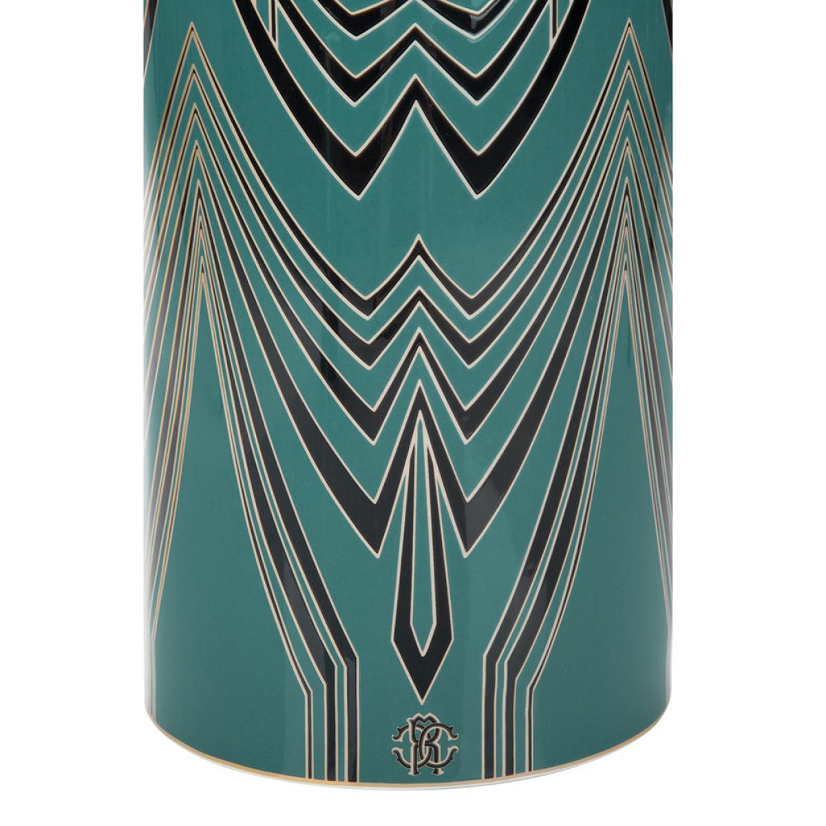 Add a decorative touch to any room of the home with this Deco vase from Roberto Cavalli. Made from fine bone china the charming vase features a bright turquoise surface with gold and black detailing. Perfect for positioning at the centre of a dining table or to fill with a favourite bunch of flowers, the vase comes in two sizes and makes a great gift idea for any occasion.