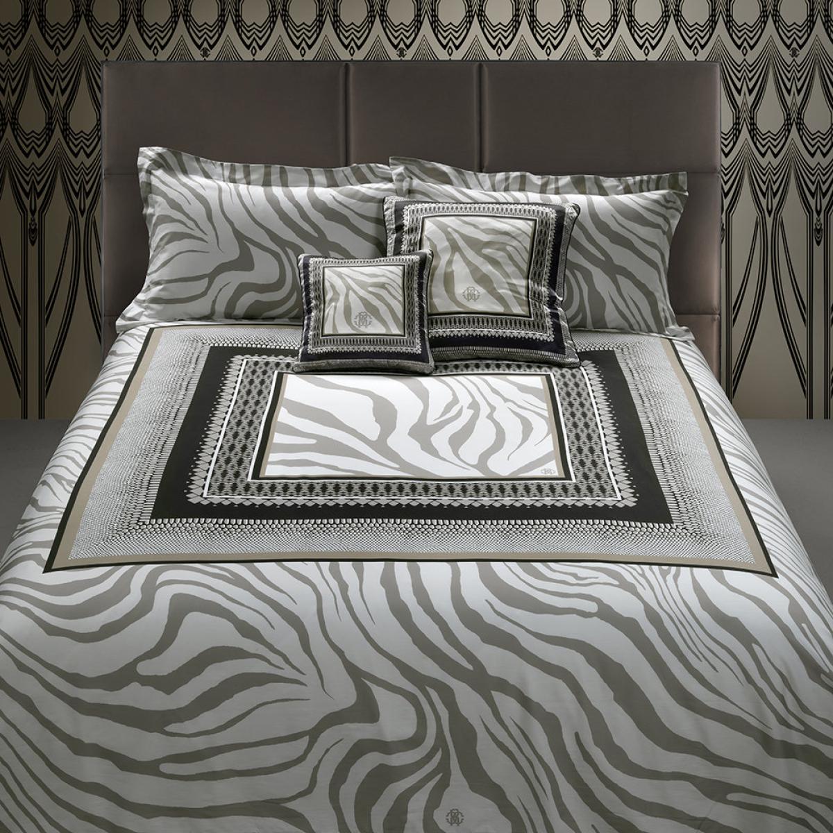 Bring wild vibes to your bedroom with this Frame Zebrage bed set from Roberto Cavalli. Set on irresistibly soft cotton sateen, this bed set is enhanced with striking snake and zebra prints. For full opulence, pair this set with the complementing silk cushion and bedspread. Key features: * Bed set * Material: 100% cotton sateen * Set includes: * Duvet cover: 240x220cm * Flat sheet: 270x290cm * 2 x pillowcases: 50x75cm * Luxurious 300 thread count * Zebra print * In sand tones * Button closure * Machine washable