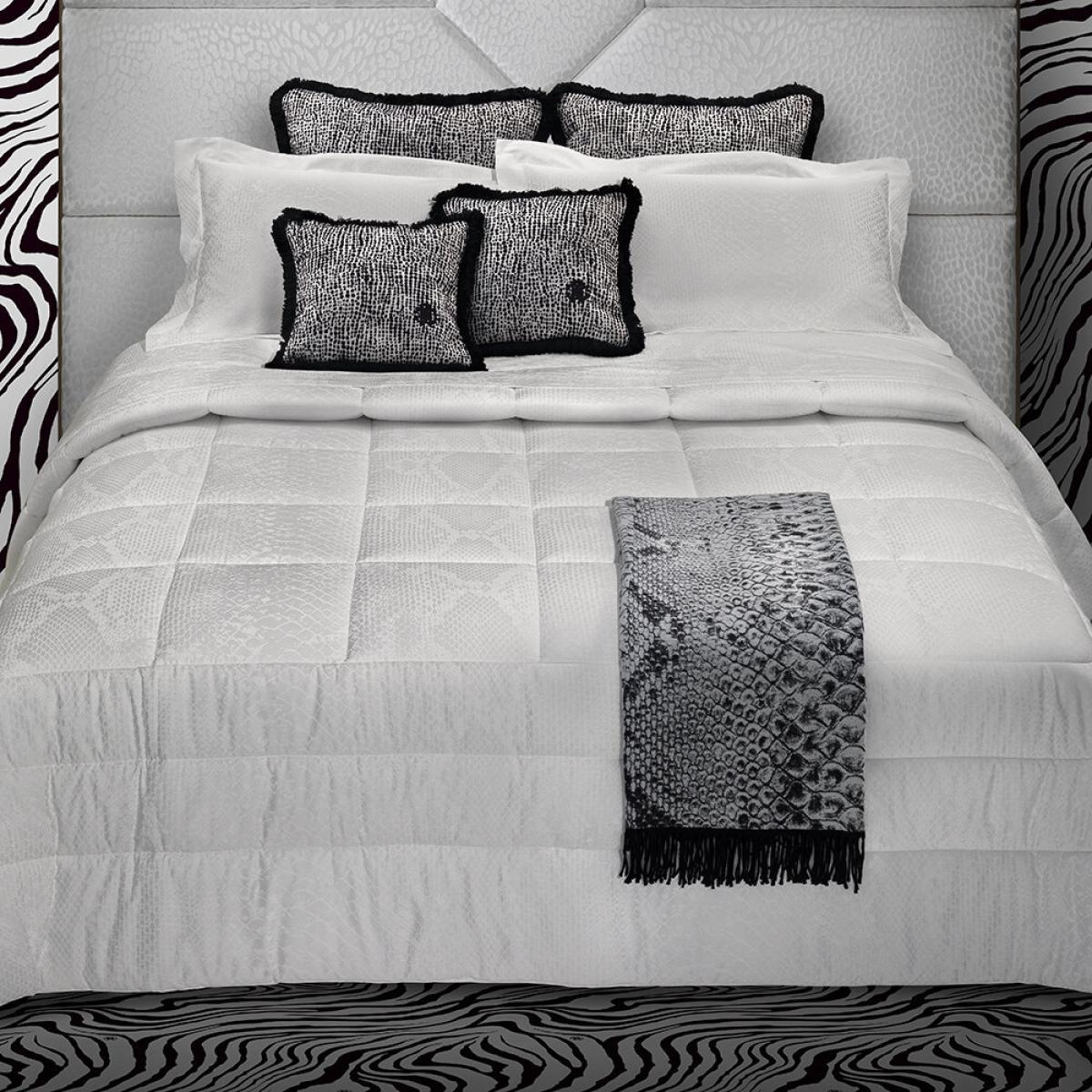 The Roberto Cavalli python throw is a striking piece that adds a luxe, exotic touch to any interior. Its bold black and white pattern lends itself well to monochrome schemes or to adding contrast in more neutral spaces. I love using this in a modern or contemporary setting - draped over a sofa or armchair for an instant upgrade - but it can also work in eclectic or boho interiors, complemented by textured cushions and layered fabrics. Practical styling tips include pairing it with solid-coloured throws or cushions to let the pattern stand out, and keeping the surrounding décor minimalist to avoid visual overload. It's a versatile accessory that brings both style and texture, making it a smart investment for elevating a space.
