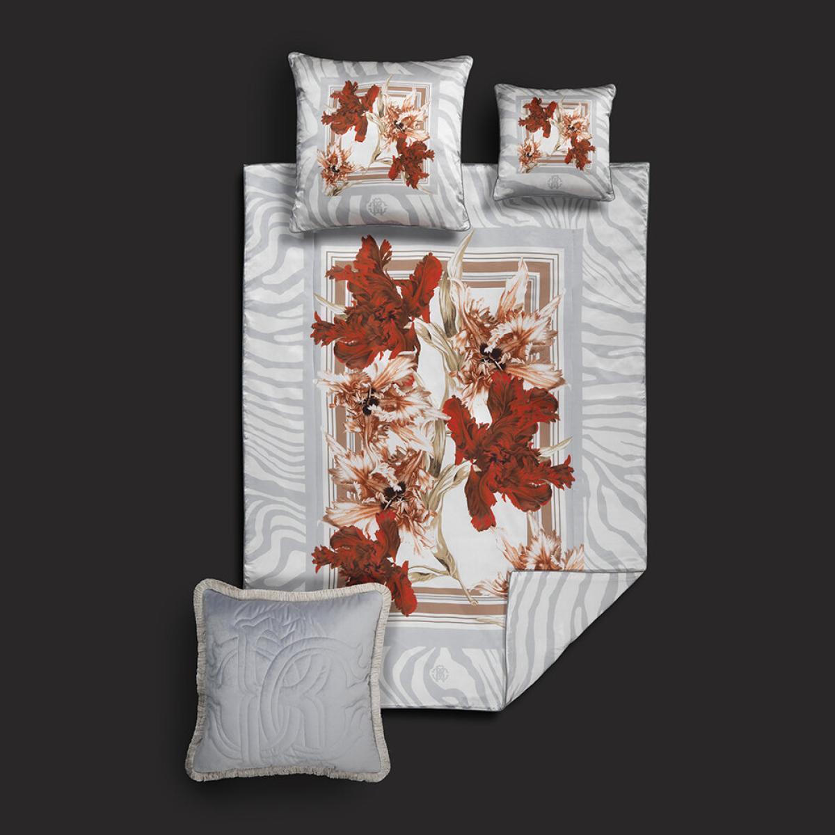 Go all out with animal print in the bedroom with this Zebra Bloom bed set from Roberto Cavalli. A testament to the brand's signature eye-catching style, this bed set combine vivid florals in orange and red with a zebra print background in cool grey. Made from silky soft cotton sateen, it has a sumptuous 300 thread count which you'll love wrapping up in after a long day. Key features: * Bed set * Material: 100% cotton sateen * Set includes: * Duvet cover: 240x220cm * Flat sheet: 270x290cm * 2 x pillowcases: 50x70cm * Sumptuous 300 thread count * Vibrant floral design * In vivid red and orange shades * Grey zebra print border * Button closure on the duvet cover * Made in Italy * Machine washable