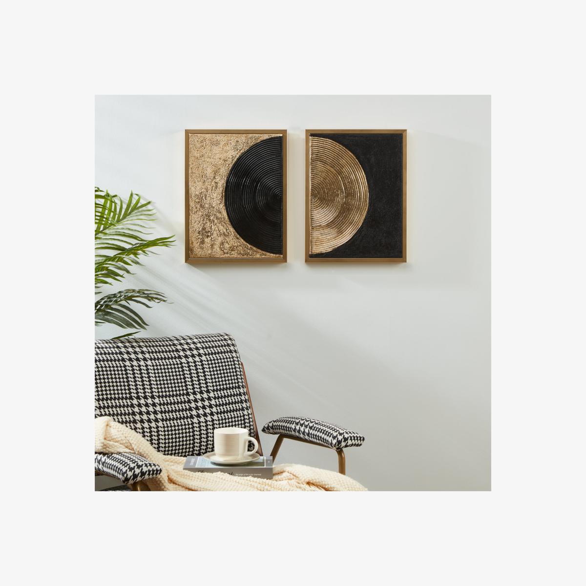 I love the Roberval Black and Gold Canvas Set for its striking monochrome contrast and modern elegance. It works particularly well in contemporary or minimalist interiors, where it can add a sophisticated focal point without overwhelming the space. Practical styling tips include hanging these pieces above a neutral sofa or bed to create a balanced look, or pairing them with metallic accents to enhance their gold detailing. Additionally, they can be layered with textured cushions or soft throws in similar colour palettes to create a cohesive and polished aesthetic. Overall, a versatile set that elevates any room with minimal effort.