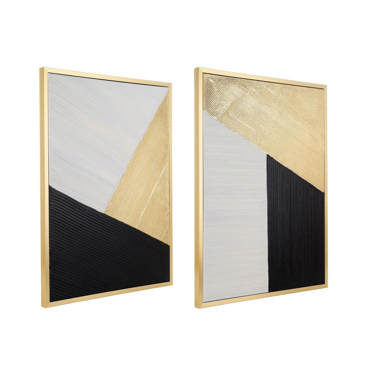 I love this set of two canvases for its sleek, modern aesthetic and versatile colour palette. The monochrome tones with a touch of gold make it an ideal statement piece that can elevate both contemporary and minimalist interiors. It works particularly well in living rooms, bedrooms, or home offices with clean lines and neutral schemes, adding a subtle yet stylish focal point. For practical styling tips, try hanging these above a sofa or console table, or pairing them with other black and gold accents for a cohesive look. Because of the bold geometric design, it’s also perfect for creating visual interest without overpowering the space, making it a reliable choice for adding sophistication and depth to various interior styles.