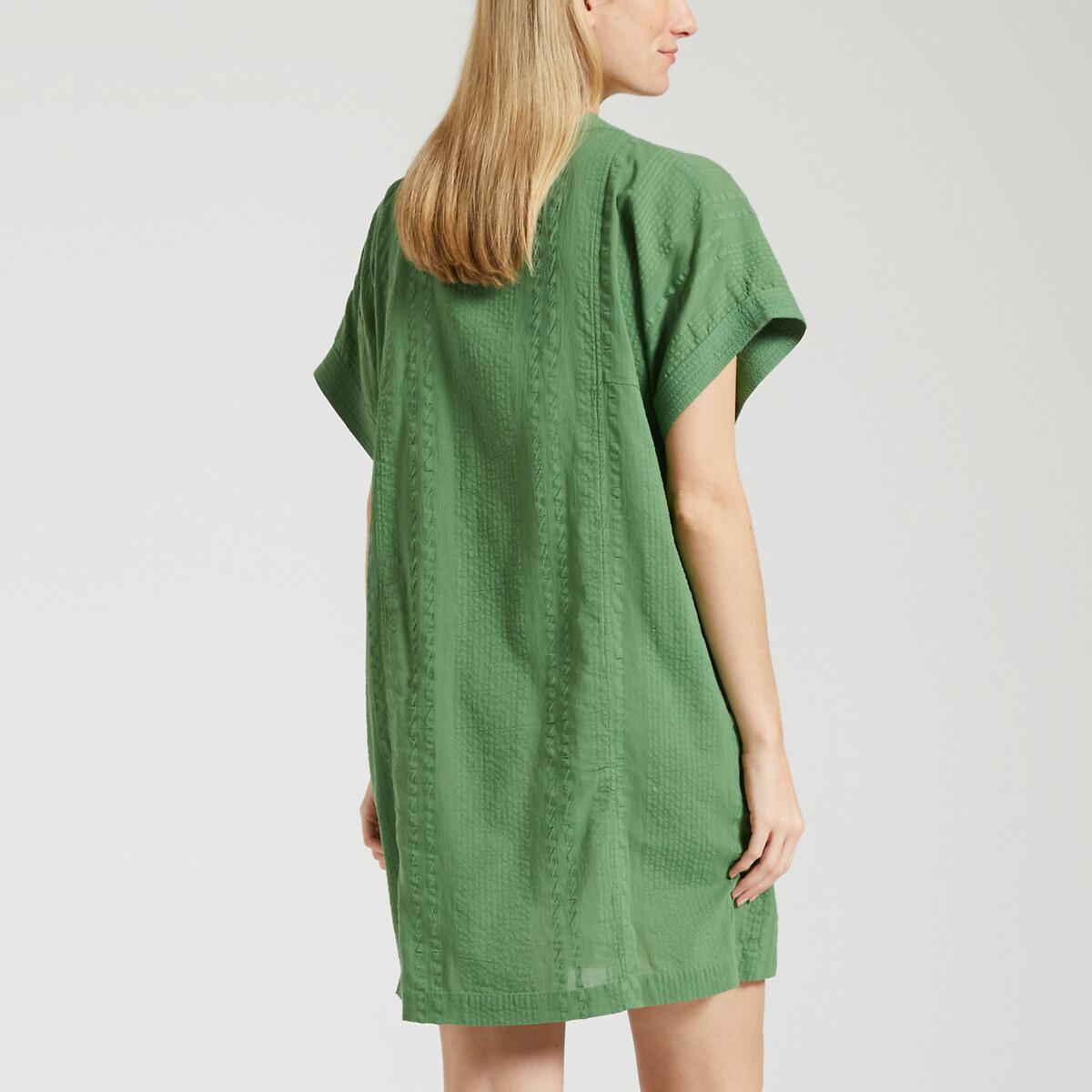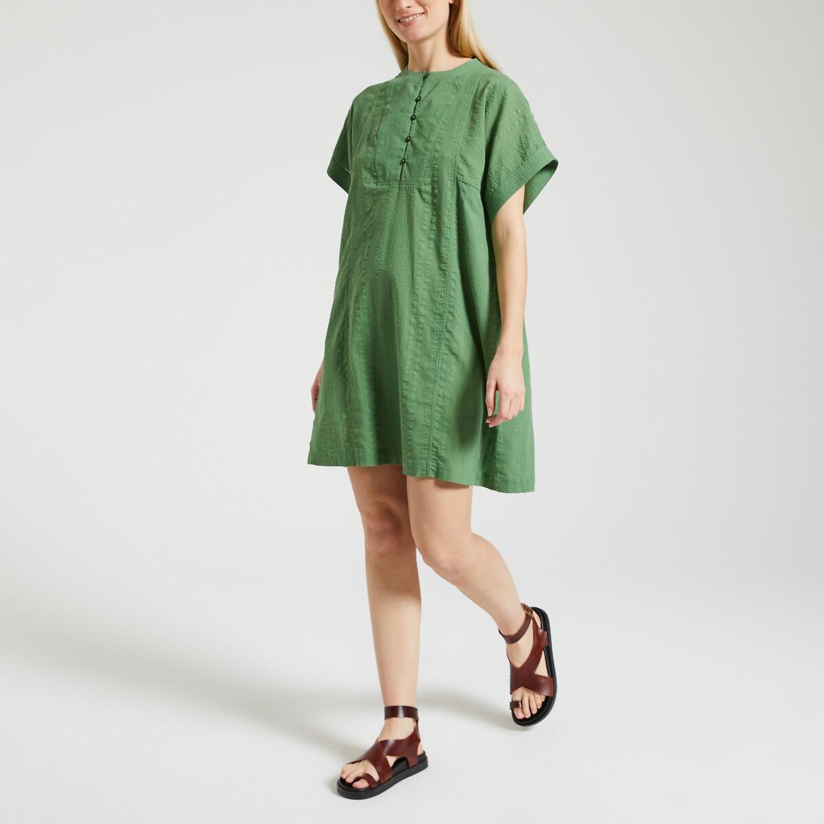 Robily short sleeve mini dress. Shift dress styled in cotton with pretty details, including wide sleeves, a grandad collar and buttoned bib front. Little turn-ups on the sleeves. Product details • Style: shift • Mini • Short sleeves • Grandad collar Fabric content and care advice • Main fabric: 100% cotton • Lining: 100% cotton • Please refer to the care instructions on the product label