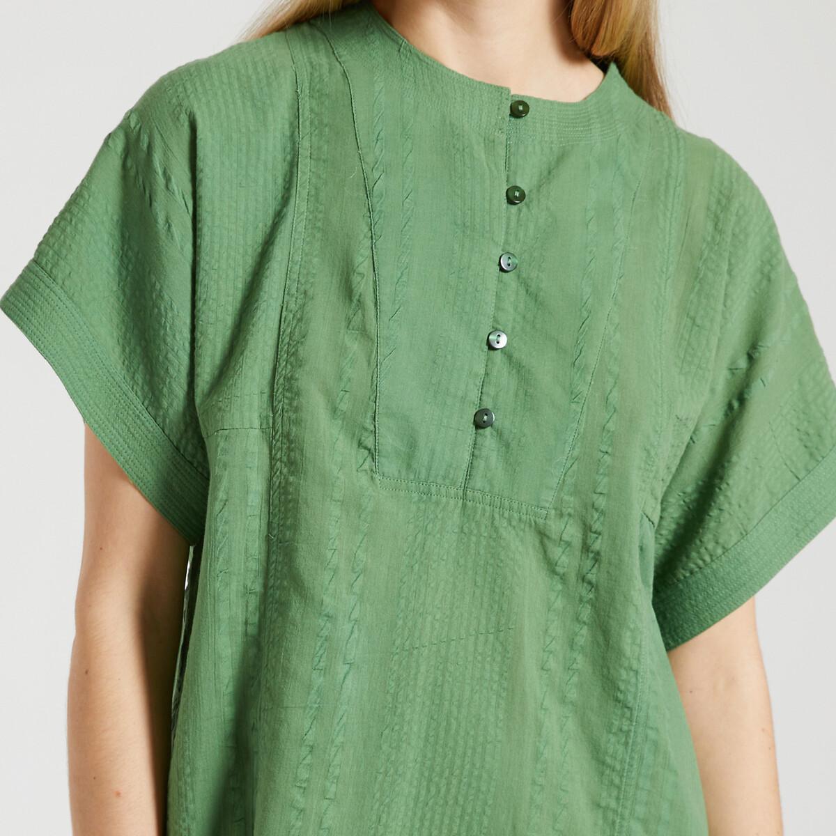 Robily Cactus Mini Dress with Grandad Collar in Cotton