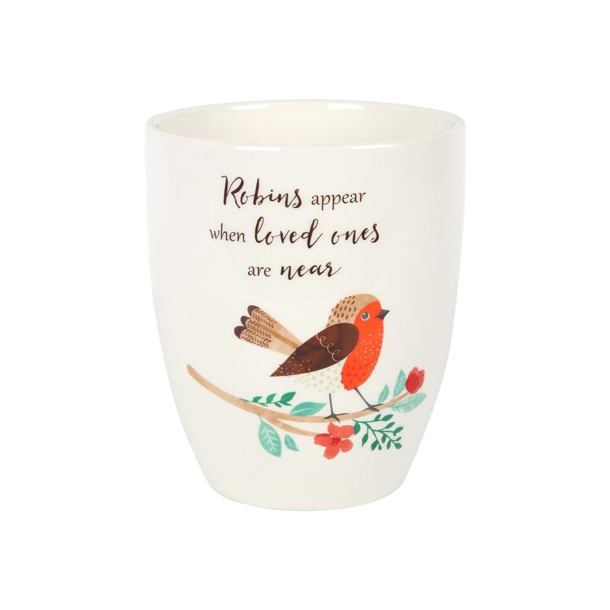 This ceramic plant pot is sure to bring a smile to someone's face with its cute robin illustration and sweet 'Robins appear when loved ones are near' text. Makes a thoughtful gift for someone in need of some uplifting words.