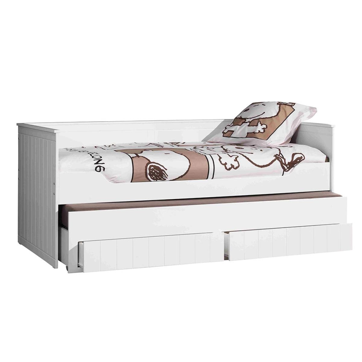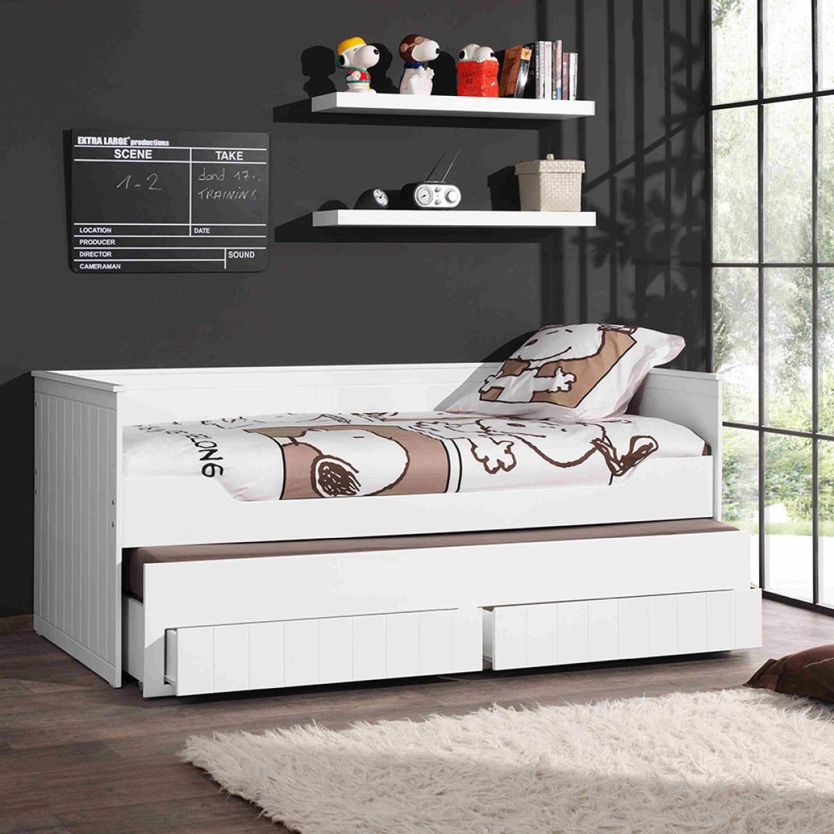 The perfect space saver, the Robin Day Bed is ideal for smaller bedrooms! Manufactured from solid pine and MDF, the fresh white colour will easily coordinate with any interior style and the tongue and groove detail adds an interesting element. With a trundle drawer, it will be fantastic for sleepovers or those unexpected guests and the two storage drawers, great for spare bedding or toys! Whether in your kiddies room or the guest room, this bed will be a welcome addition.