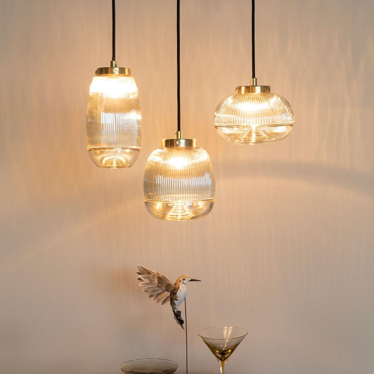 Give your home a golden glow with the Robin Pendant Lights. Available in a choice of shapes - select from bold, tube or round. The decorative blown glass features a cognac coating and ribbed design that enhances and emanates a warming light that can't help but brighten your day! Create a statement arrangement with the alternating Robin pendant lights and hang above a dining table and chairs or trail through a hallway or over a kitchen island. Wherever you decide to install them, these art deco inspired lights make an impact from day to night.