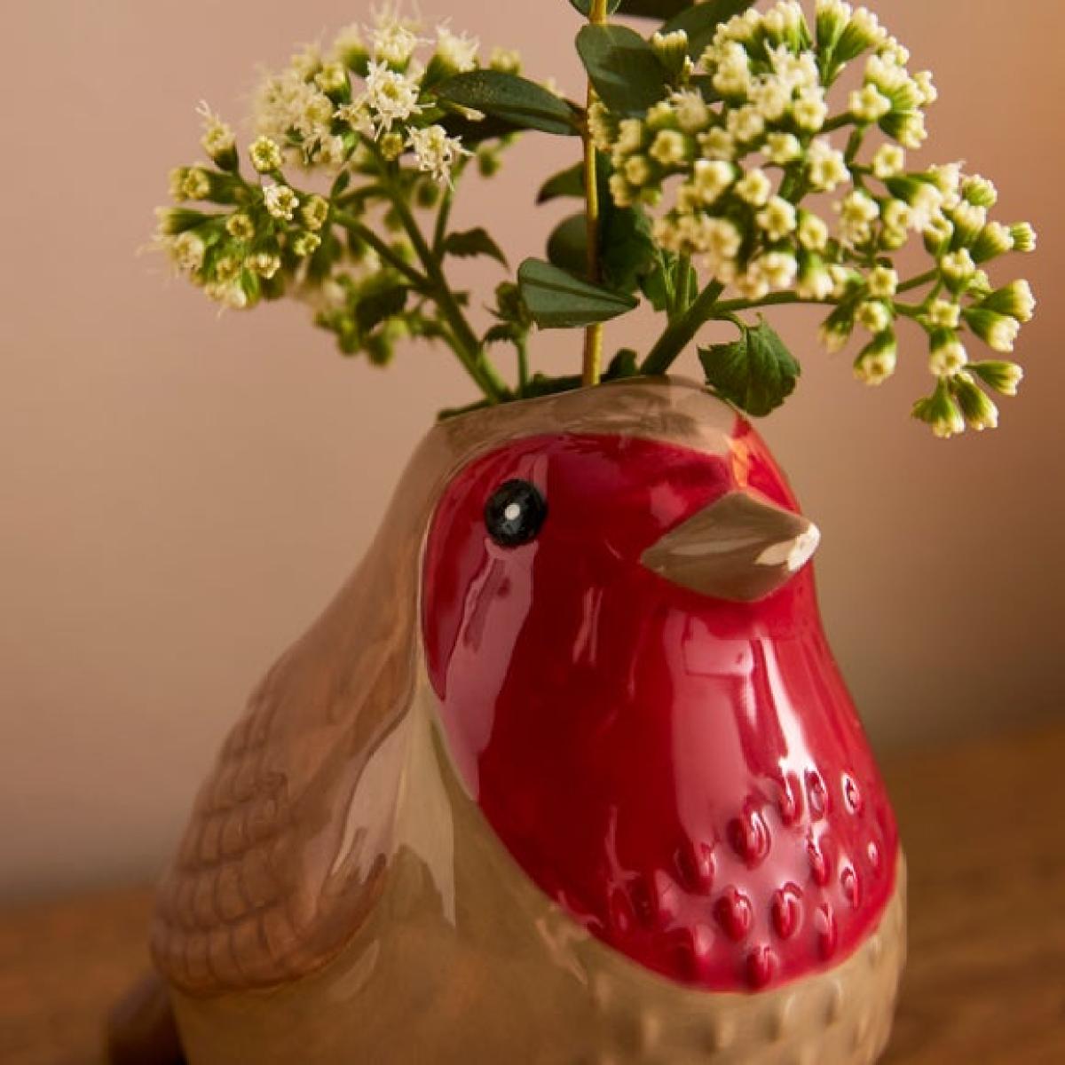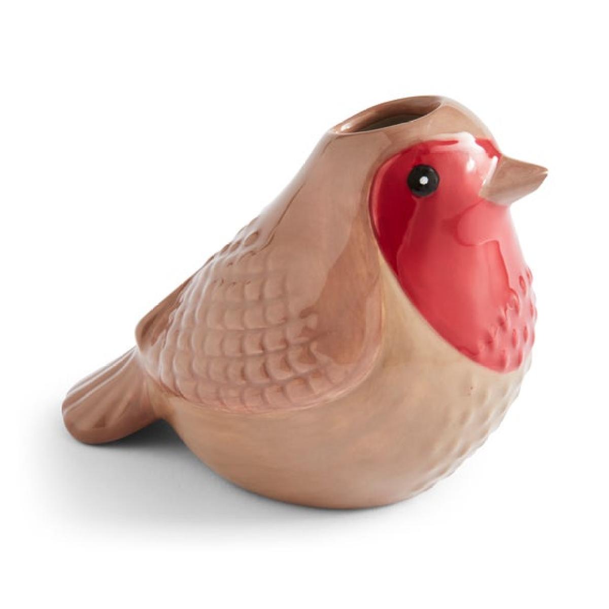 * Ceramic bud vase * Robin shaped * Perfect for small posies Add a touch of style to your décor with this robin-shaped ceramic bud vase. Its petite size makes it perfect for displaying small posies or a single stem. Whether perched on a windowsill or nestled on a shelf, it brings a cheerful, nature-inspired accent to any space. A sweet and simple way to brighten up your home.