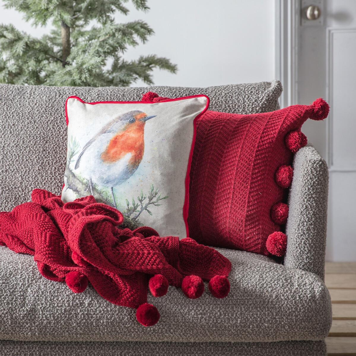 This traditional style Robin Watercolour Cushion has a contrasting red piped edge. This unique watercolour print has a country feel, perfect for this winter season. This cushion is feather filled. Product Dimensions- 45 x 45cm. This product will be dispatched by one of our trusted suppliers. You’ll be contacted by their selected courier about your delivery.