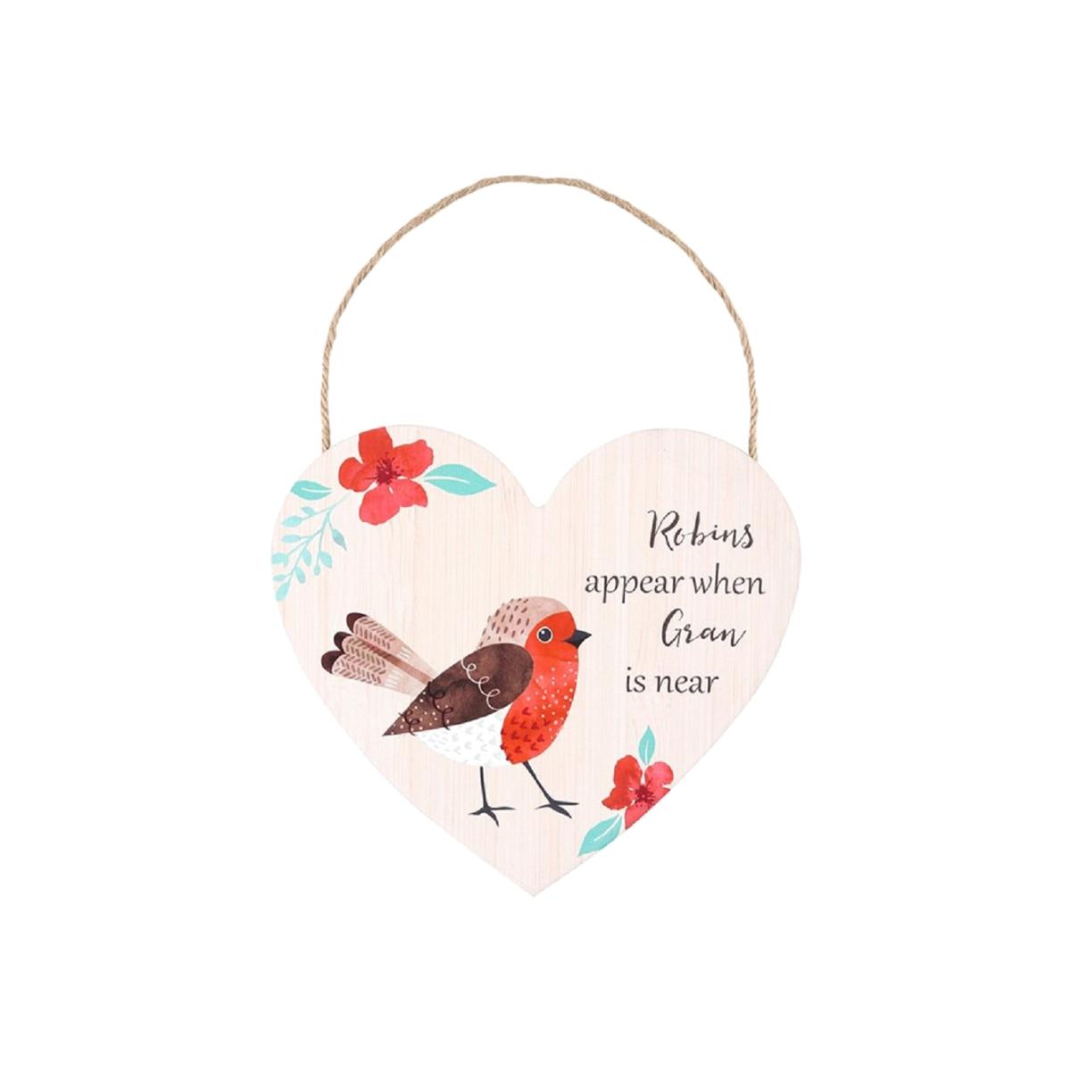 Bring extra love and comfort to those who have lost someone close with this meaningful hanging sign. Features a robin design with 'Robins appear when Gran is near' text. Robins are said to symbolise angels and new beginnings when times are tough.