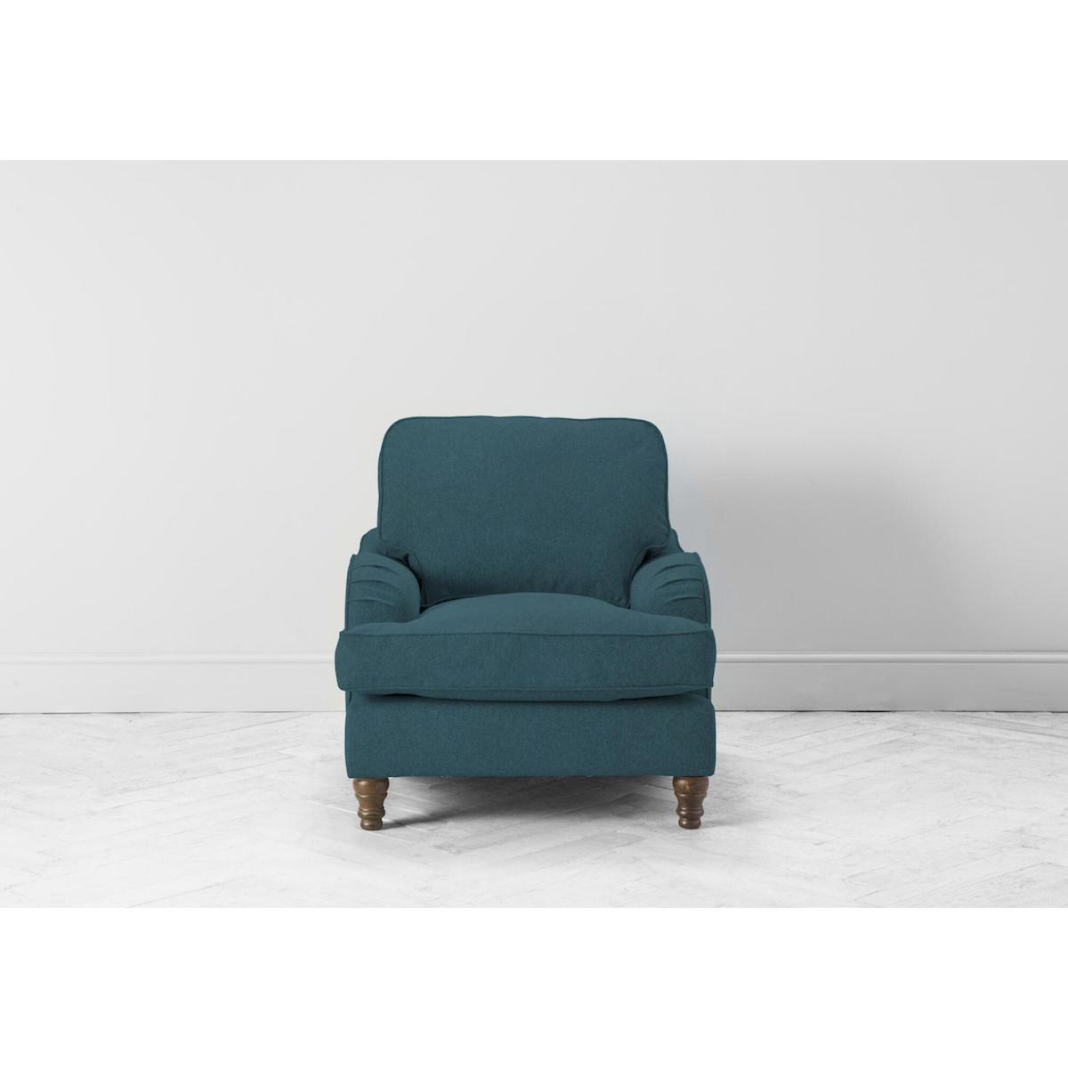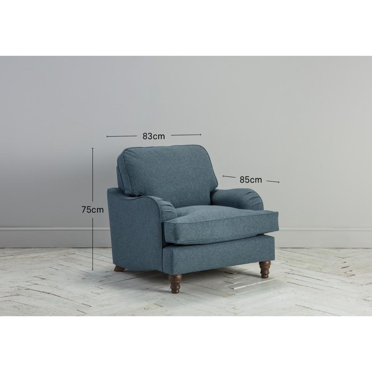 I love this armchair for its rich steel blue tone, which instantly adds a sophisticated yet inviting touch to any space. It works particularly well in both contemporary and classic interiors, offering a versatile colour that complements neutral palettes or bold patterns. Styling tips include pairing it with textured cushions in cosy fabrics like wool or velvet for added dimension. It also makes a great accent piece in living rooms or bedrooms, where its compact size offers functionality without dominating the room. To keep it feeling fresh and modern, consider placing it near brass or wooden accents, which will enhance its colour and craftsmanship.