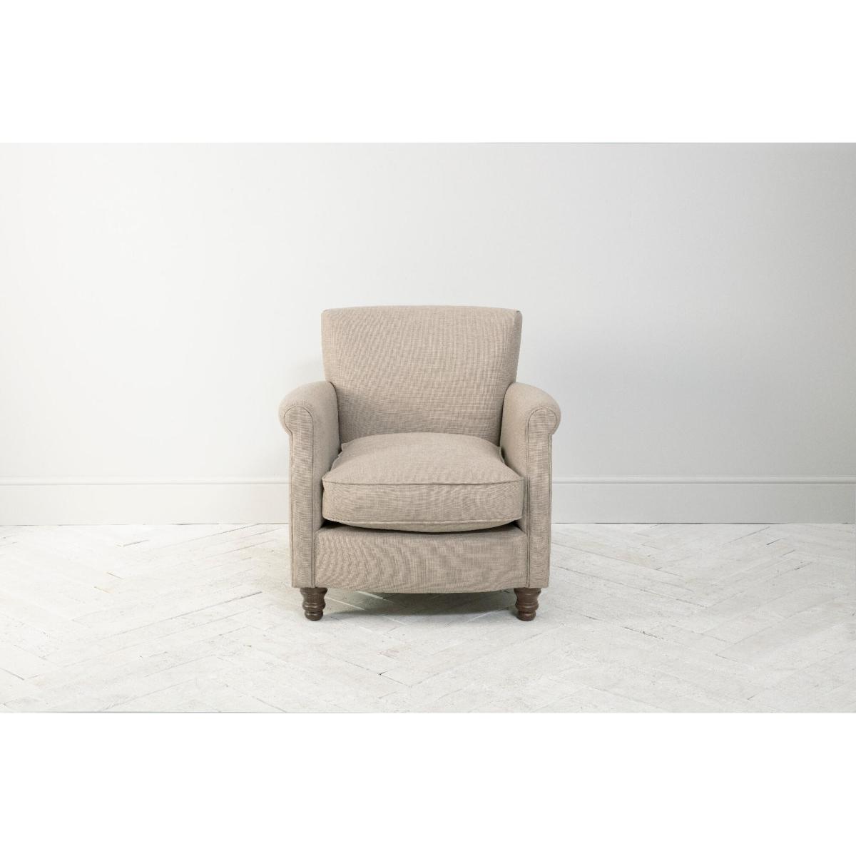 When it comes to dressing contemporary interiors with poise, there's nothing like our Robyn made to order armchair. A fabulously classic design, this beautiful chair with scrolled arms, dark wooden carved legs and hardwood frame stands out for the harmonious look and feel it exudes. Available in over a hundred fabrics to choose from, each Robyn is made to order by hand exclusively for you, and perfect to create the reading corner of your dreams.