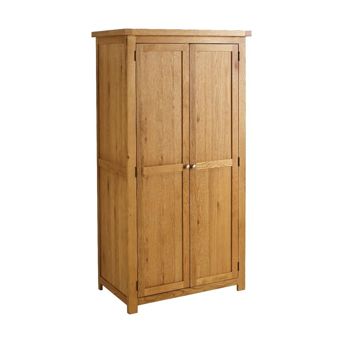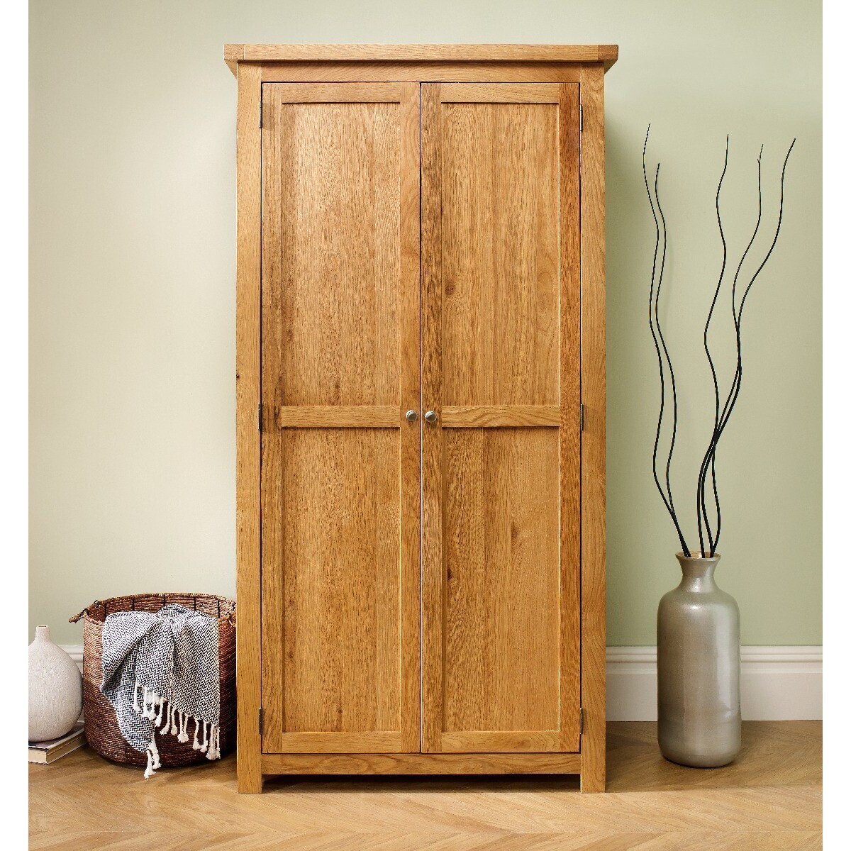 Solid oak is the ideal material to create traditional looking furniture. The Robyn range is crafted using a high quality variety which has a natural grain to ensure no charm is lost when varnished. With a wide range of items available, you could easily create the perfect matching bedroom with this collection. The Robyn two door wardrobe is a great storage option for the modern or classic bedroom. Plenty of hanging. High quality solid oak. Finished with a light varnish to enhance the natural wood grain. Easy to assemble.