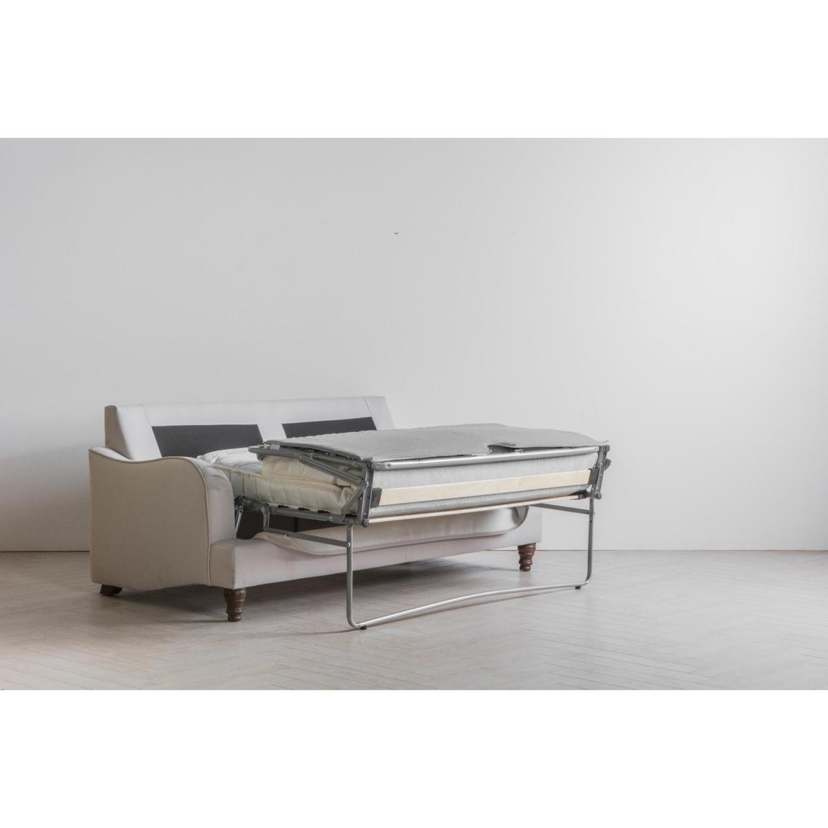 When it comes to dressing contemporary interiors with poise, there's nothing like our Robyn made to order sofa bed. This three-seater sofa bed is built to last, using a hardwood frame and robust two-fold mattress mechanism that set a solid foundation for a great night's sleep. With its scrolled arms and dark carved wooden feet, this exuberant sofa bed will shine in classic decors. Available in over a hundred fabrics to choose from, each Robyn is made to order by hand exclusively for you, and it's perfect for those who love enjoying cosy weekends at home.
