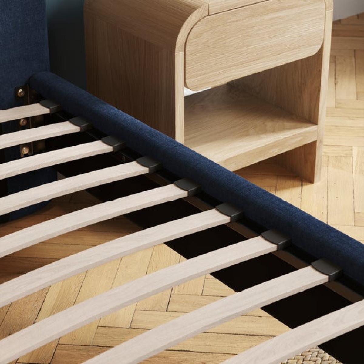 * Modern bed frame * Soft velvet upholstery * Wooden legs This beautifully upholstered bed is wrapped in plush, high-quality fabric that feels wonderfully soft to the touch, perfect for those who love a bit of everyday indulgence. Its clean, modern lines bring a fresh, elegant look to your space, while the durable frame and sprung slatted base offer breathable support for a restful night’s sleep.