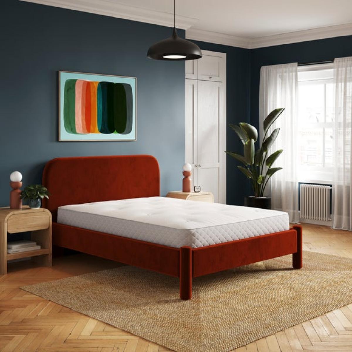 I love this bed frame for its plush velvet finish and rich colour, which instantly adds a touch of luxury to any bedroom. It works particularly well in modern or contemporary interiors, especially when paired with sleek, minimalistic furnishings or metallic accents. To style it effectively, consider using neutral or contrasting bedding to highlight the velvet texture, and keep accessories simple to let the bed be the focal point. To avoid overcrowding the space, opt for understated bedside tables and lamps, and add some greenery or art to bring a personal touch. This bed is versatile enough to fit into both bold, eclectic schemes or more understated, elegant bedrooms.