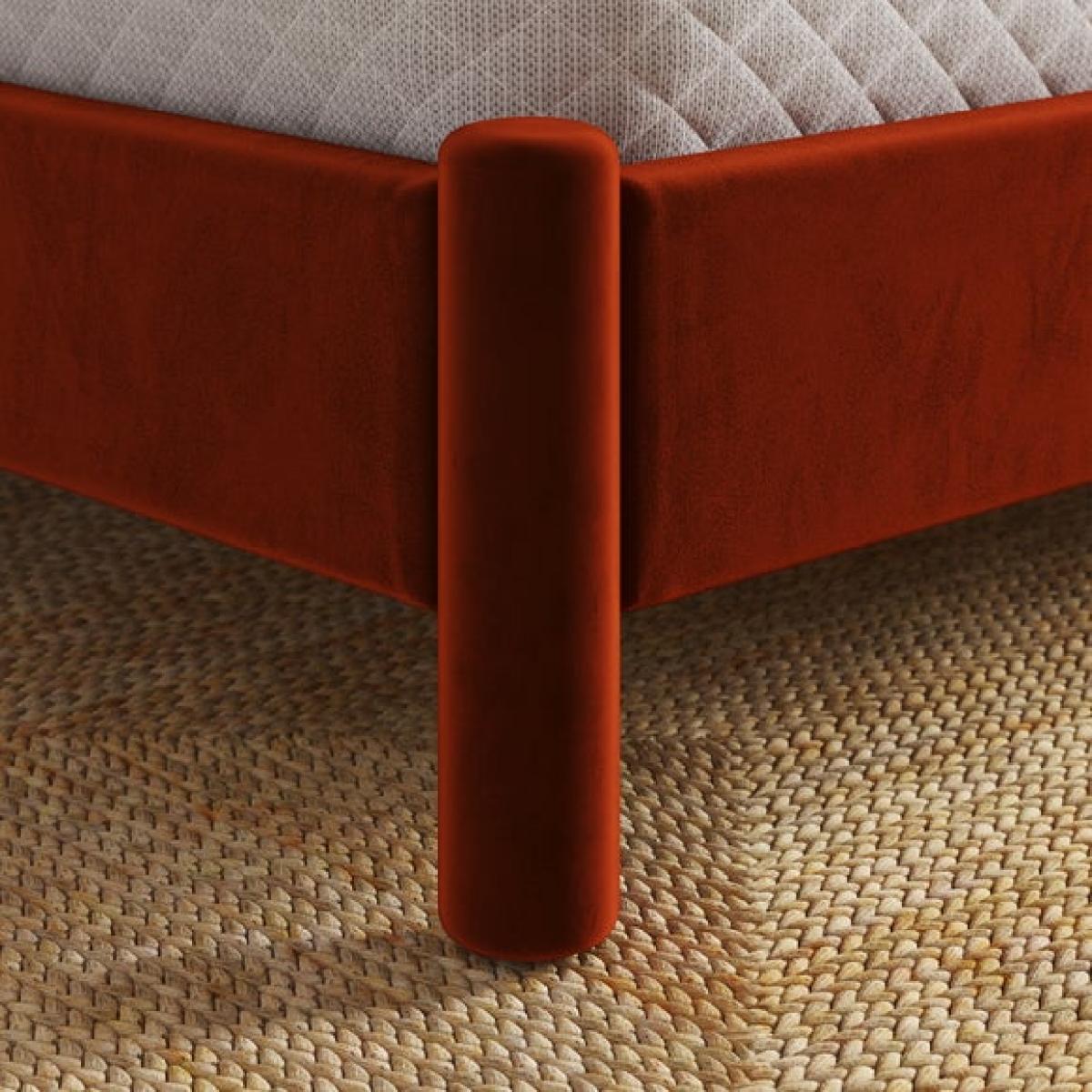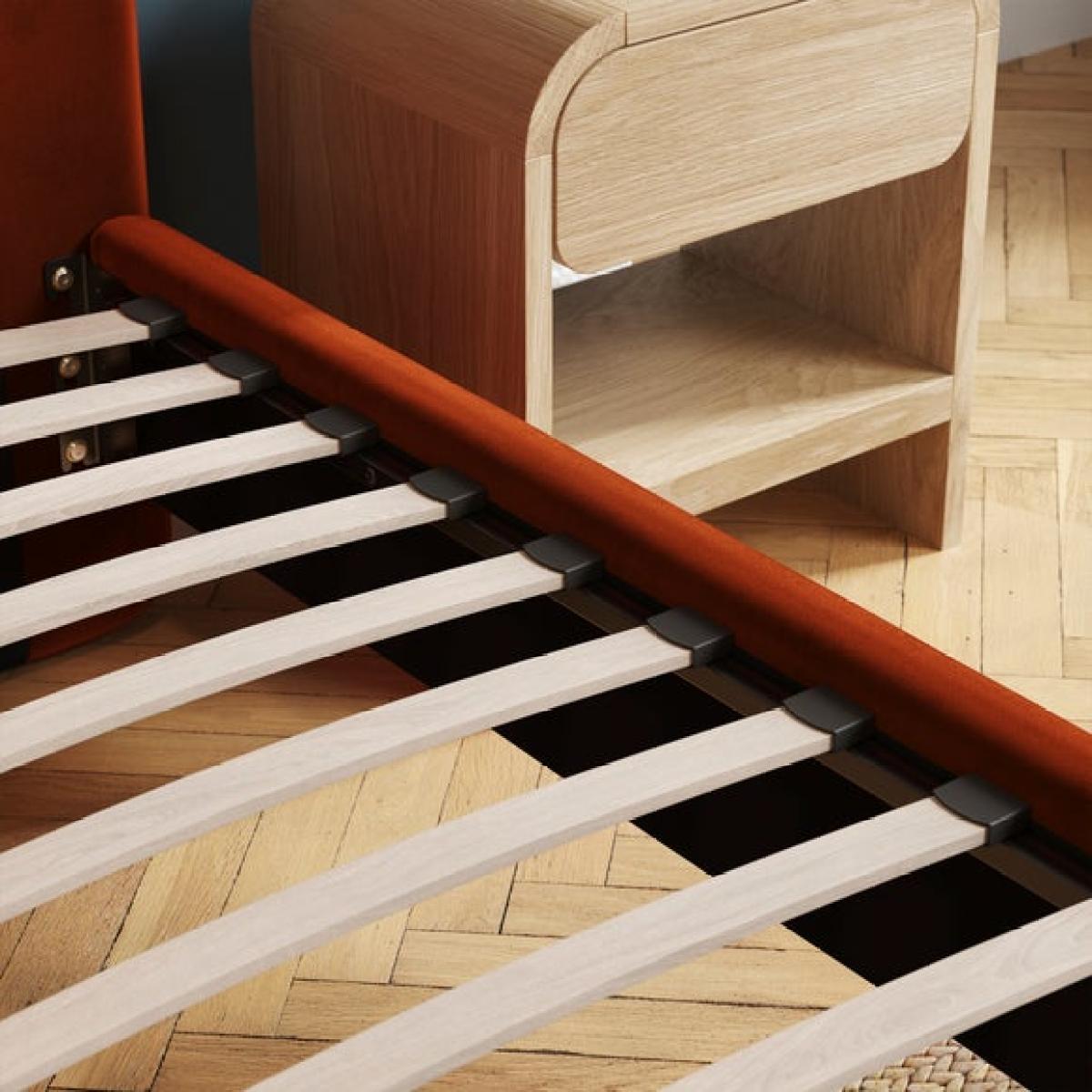 * Modern bed frame * Soft velvet upholstery * Wooden legs This beautifully upholstered bed is wrapped in plush, high-quality fabric that feels wonderfully soft to the touch, perfect for those who love a bit of everyday indulgence. Its clean, modern lines bring a fresh, elegant look to your space, while the durable frame and sprung slatted base offer breathable support for a restful night’s sleep.