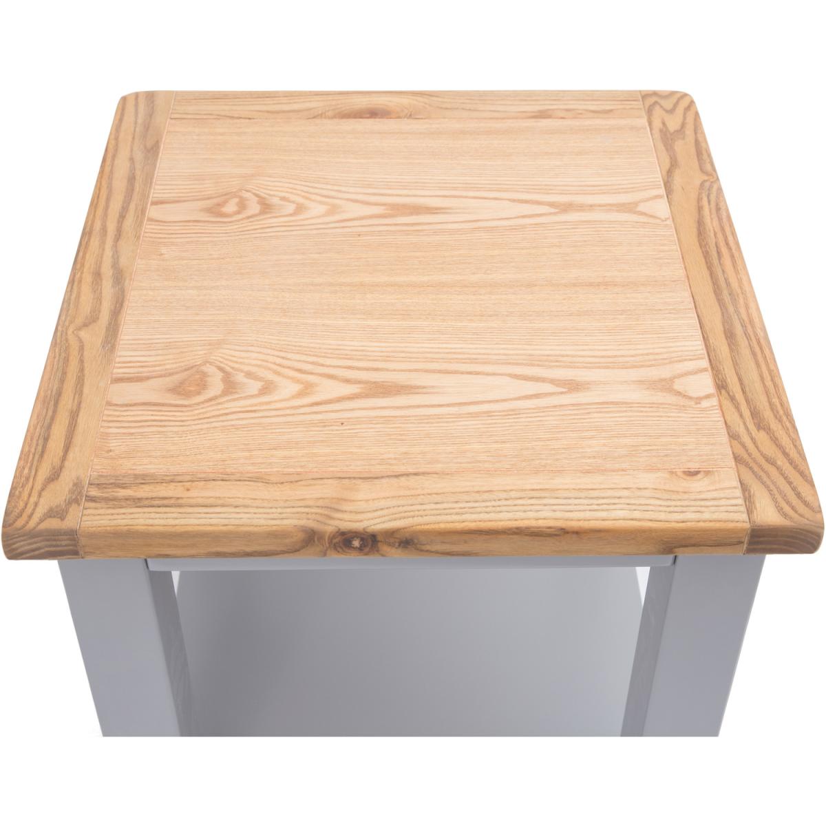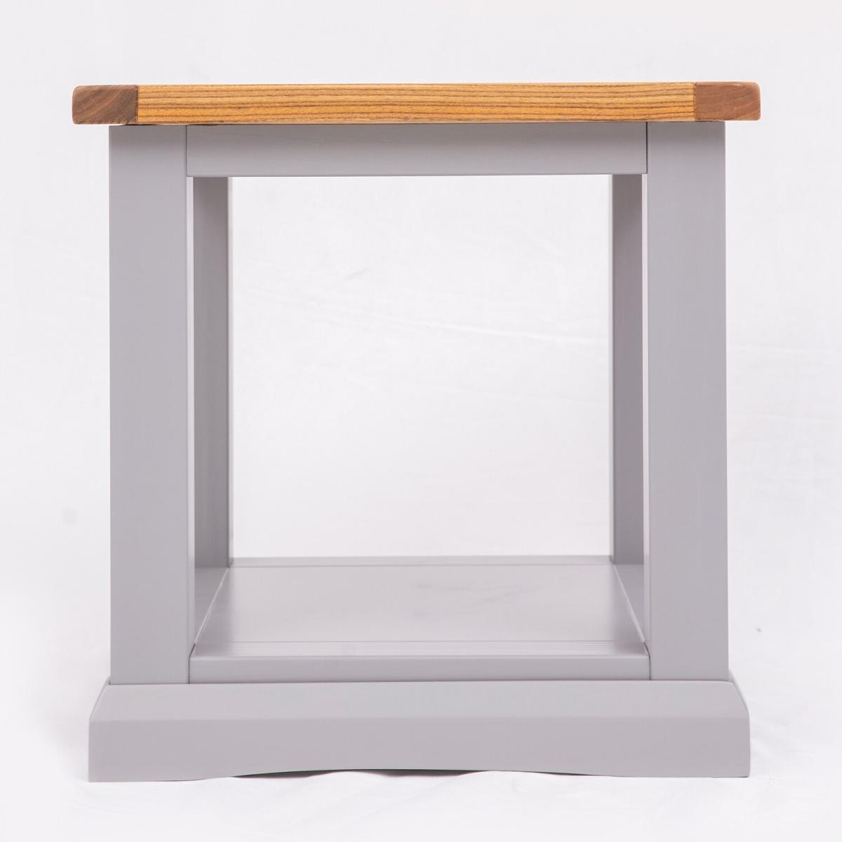 Our Rocca collection has a simple but pleasing design and is produced by our skilled craftsmen to the highest standards using responsibly sourced wood and veneers. All tops are made using a combination of hardwood and ash veneer and are carefully hand waxed giving it a great look. The body is finished with a high quality eco-friendly water base paint in an grey colour. This coffee table is perfect as a centrepiece for your room. A compact lamp table ideal for between your sofas and chairs or anywhere in your home where you require an occasional table to use. The shelf underneath allows space for storage if required. These attributes combined with a simple construction for easy assembly makes it a great value product to be taken home today.