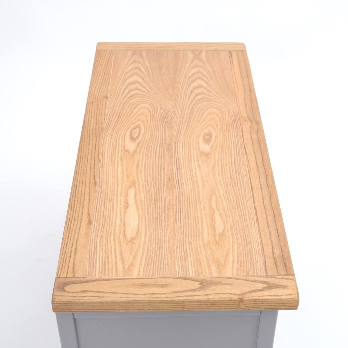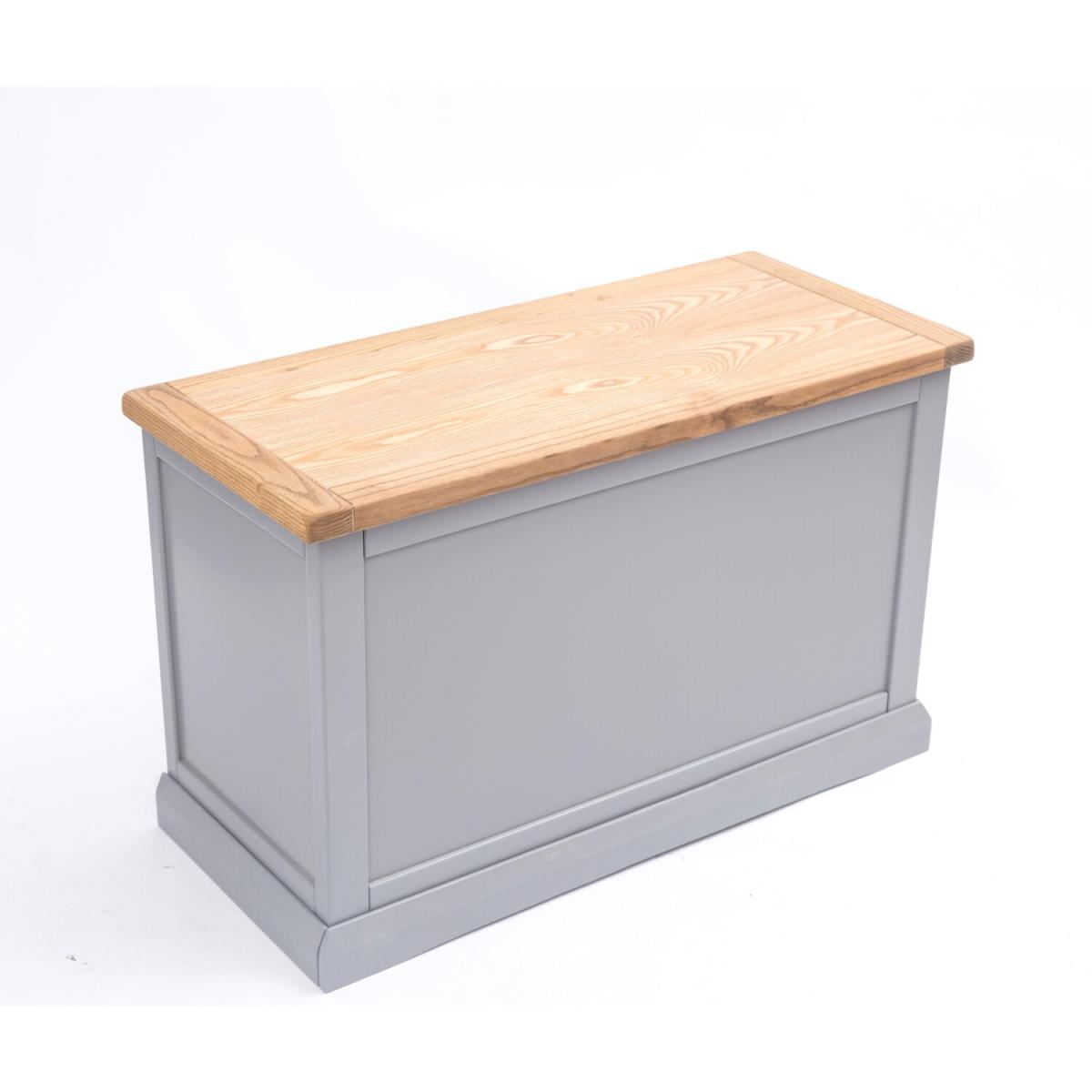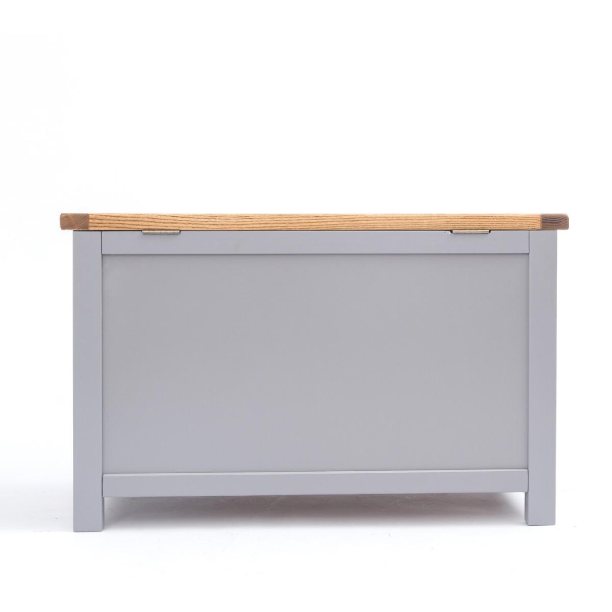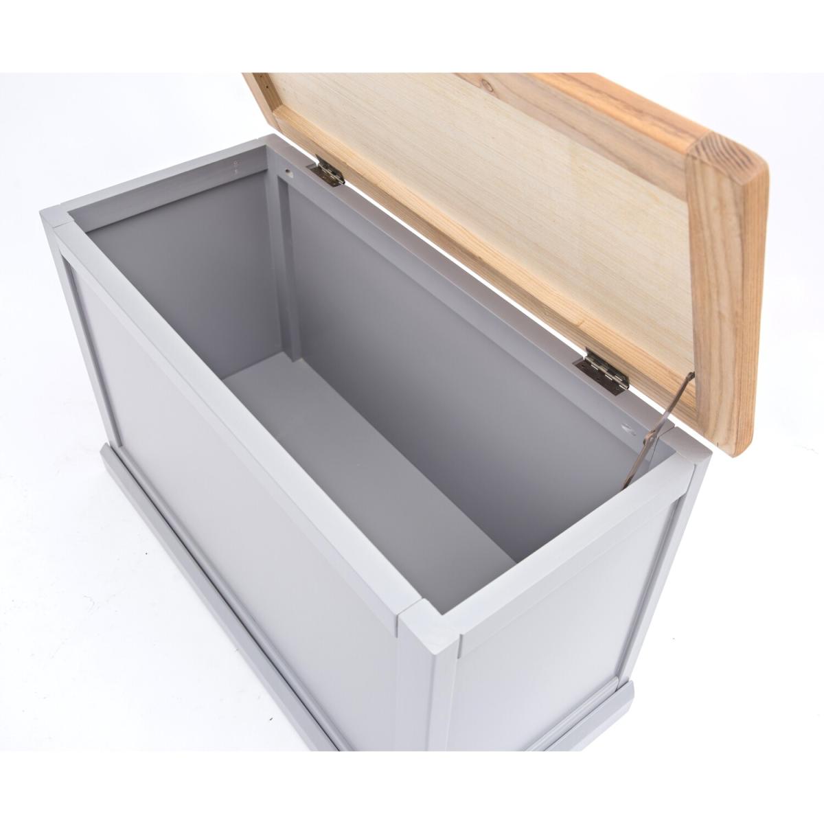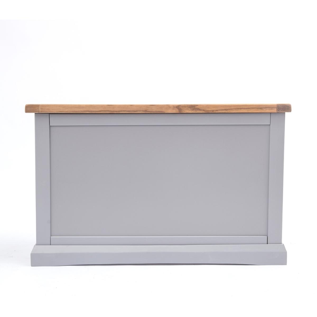 Our Rocca collection has a simple but pleasing design and is produced by our skilled craftsmen to the highest standards using responsibly sourced wood and veneers. All tops are made using a combination of hardwood and ash veneer and are carefully hand waxed giving it a great look. The body is finished with a high quality eco friendly water base paint on an grey colour. This ottoman is the perfect item to fit in small areas, but still offers plenty of storage space for all your essentials. It comes with a safety holder to avoid accidents and it is made with a solid wood frame and veneer panels, making it very strong and stable, guaranteeing it will last for a long time. The top has a 3cm thick solid wood frame, making it extremely sturdy. These attributes combined with a simple construction for easy assembly makes it a great value product to be taken home today.