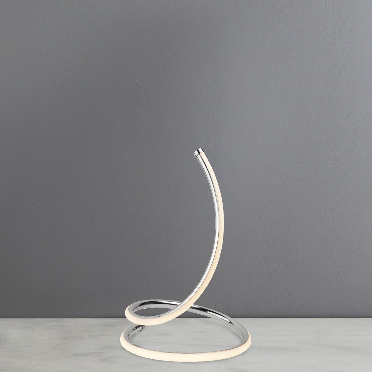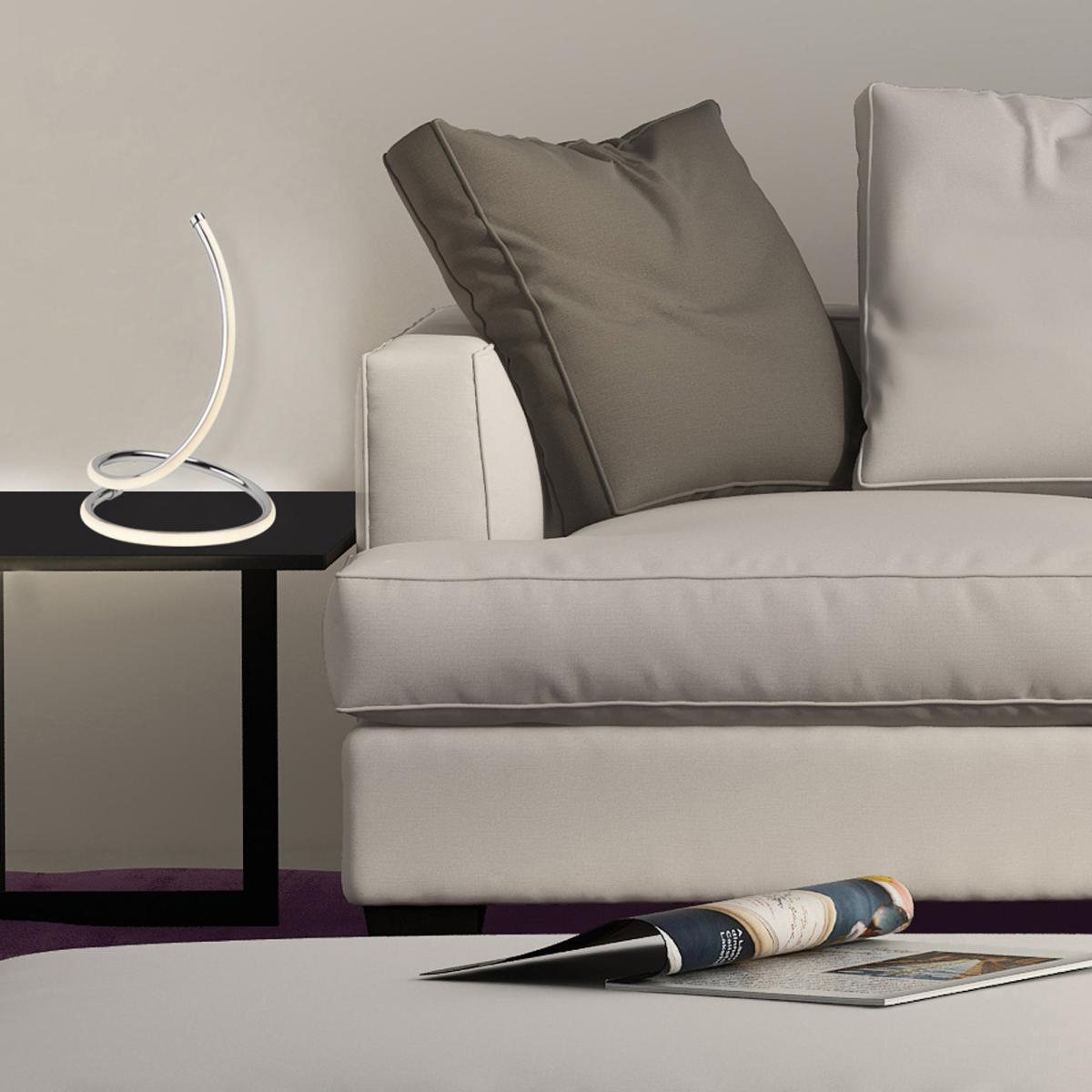 Crafted in a swirled arm structure, this stunning table lamp is finished with a plated chrome colourway and integrated LED light, perfect for adding a contemporary touch to your home. Lumens output: 334L M. Energy rating: A++ - A. Dimmable: No. Light your home in a versatile and environmentally friendly way with LED lighting. LEDs are very energy-efficient, using up to 90% less energy than incandescent bulbs and they also have a life expectancy of up to 50 times longer than traditional bulbs. LEDs have the advantage of producing a lot less heat, as well as offering the choice of a warm golden glow or a cooler white light, meaning you can find the best lighting tone to suit your home. For more information on how to replace components in our LED lighting, please click. Here.
