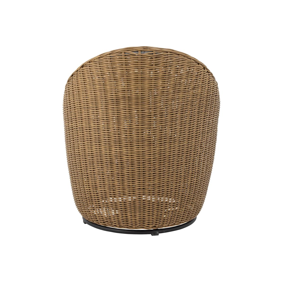 A vintage, bohemian spirit for this round Swivel armchair inspired by Scandinavian rattan furniture of the 50s. The wide Shell is made of poly rattan: this weather-resistant material perfectly reproduces the warm, authentic look of Rattan.