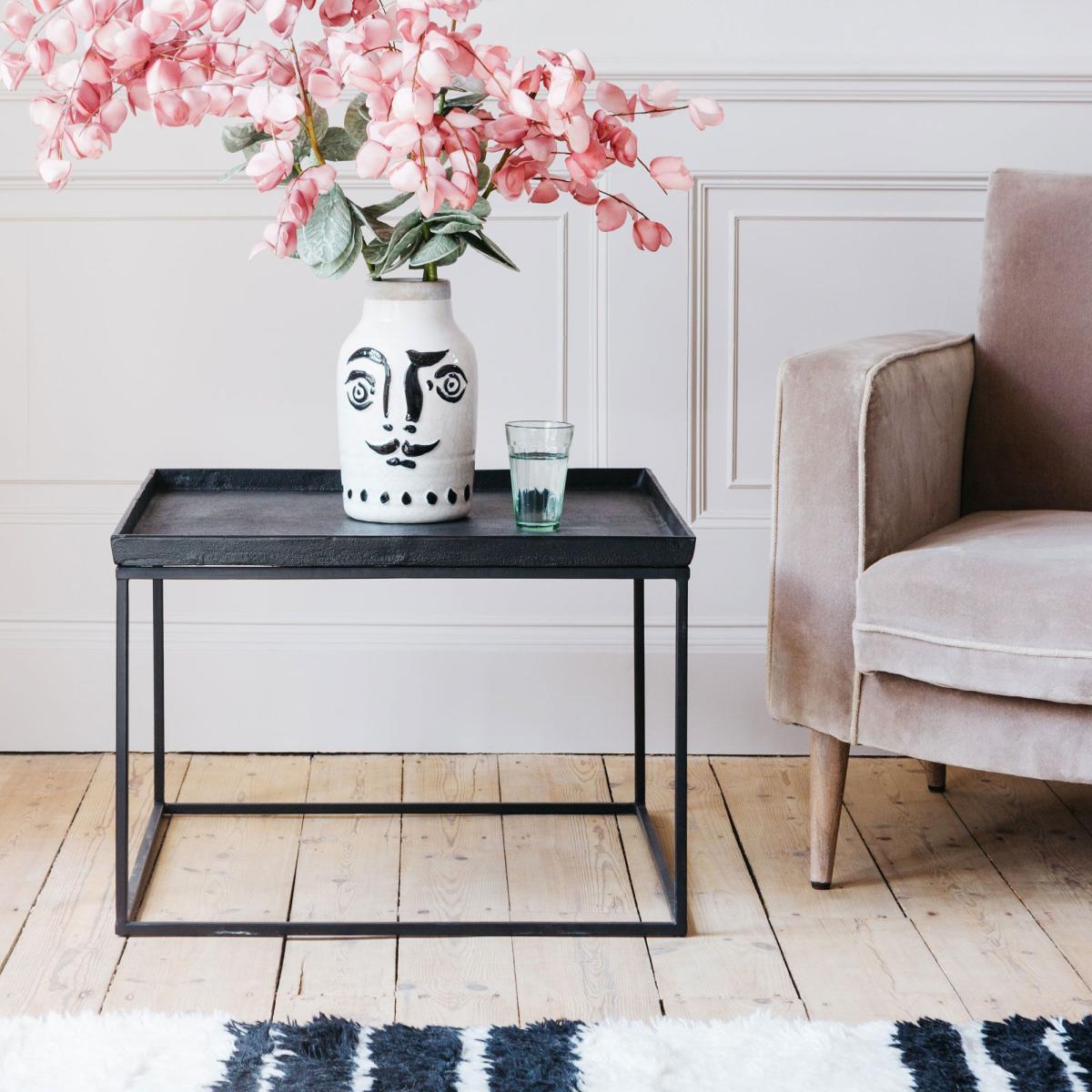 The Rocco black coffee table is a versatile piece that works particularly well in modern and minimalist interiors thanks to its sleek metal frame and simple design. I love how it adds an understated yet sophisticated urban edge while offering practical surface space. For styling, consider layering with a stack of books, a small decorative tray, or a statement vase-like the one in the image-for added character. It’s also easy to incorporate into more eclectic or contemporary schemes by pairing it with textured textiles or colourful accessories to introduce contrast and visual interest. Its compact profile makes it perfect for smaller living rooms or as a supplementary table in larger spaces.