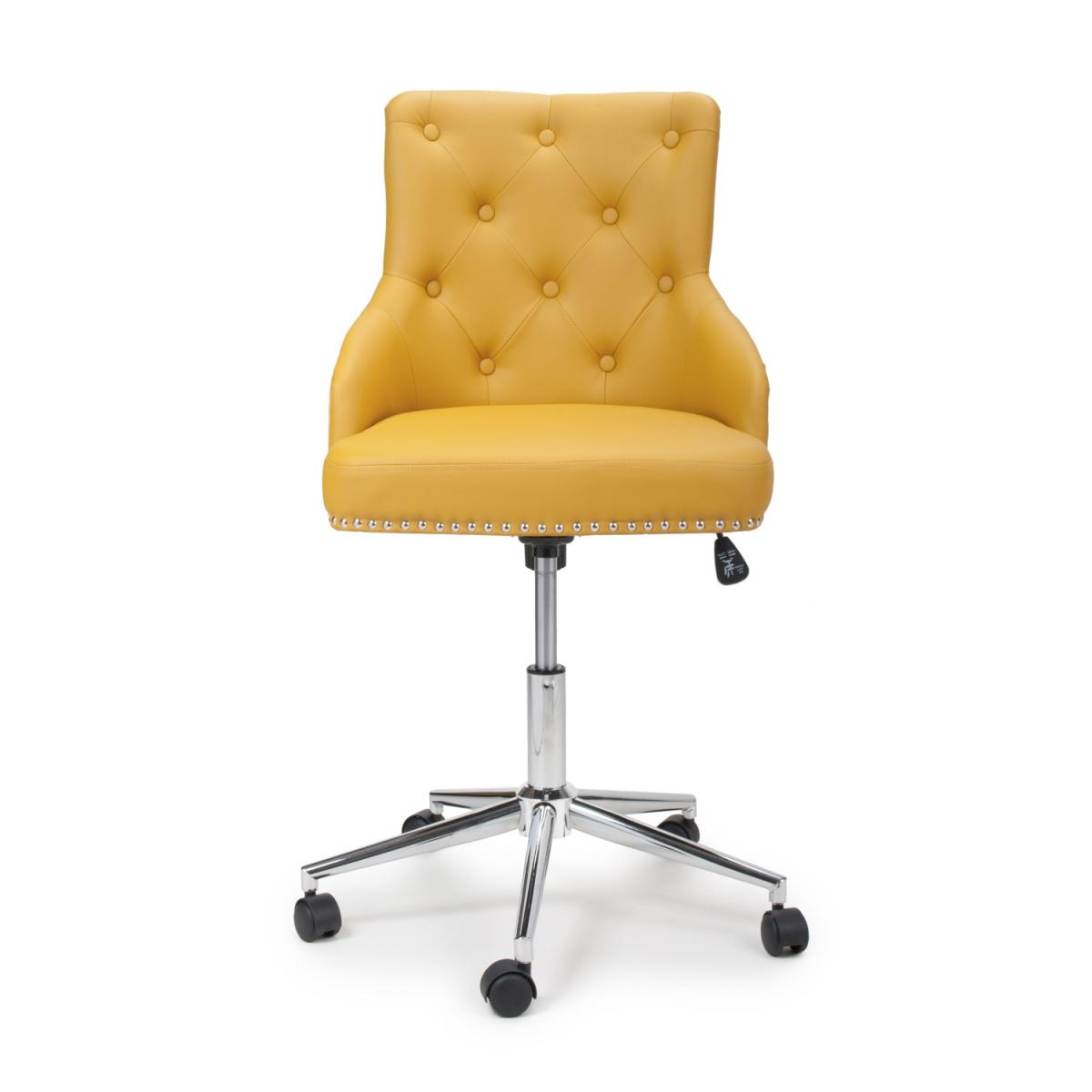 A luxurious office chair enhanced by attractive stud detail edging and tufted button back, upholstered in yellow leather effect. Complete with comfortable chrome base and castors. Assembly required. Sold individually.