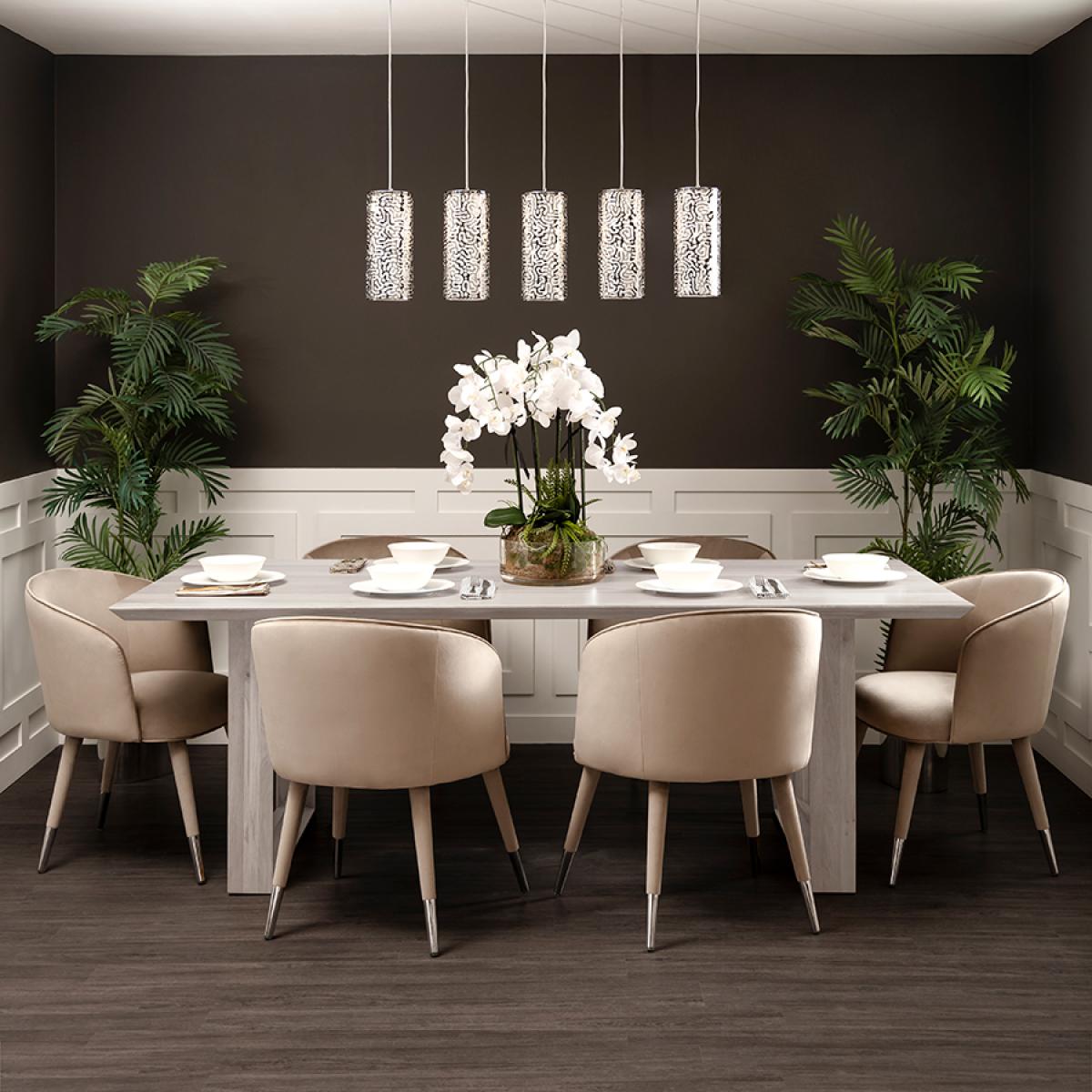 I’m a fan of the Rocco table for its pale, washed-grey oak finish and robust, straightforward frame - it slots seamlessly into Scandi-inspired flats as well as more classic dining rooms. The light tone makes it a neutral backdrop for both muted textiles and bolder accessories, so you can go for a simple runner with woven placemats or layer on mixed-style chairs for a laid-back, collected look. For practicality, choose low-profile centrepieces (think a shallow bowl of seasonal fruit or a slim vase) to keep sightlines clear, and protect the surface with natural-fibre placemats. The durable finish means it stands up well to everyday meals and occasional dinner parties.