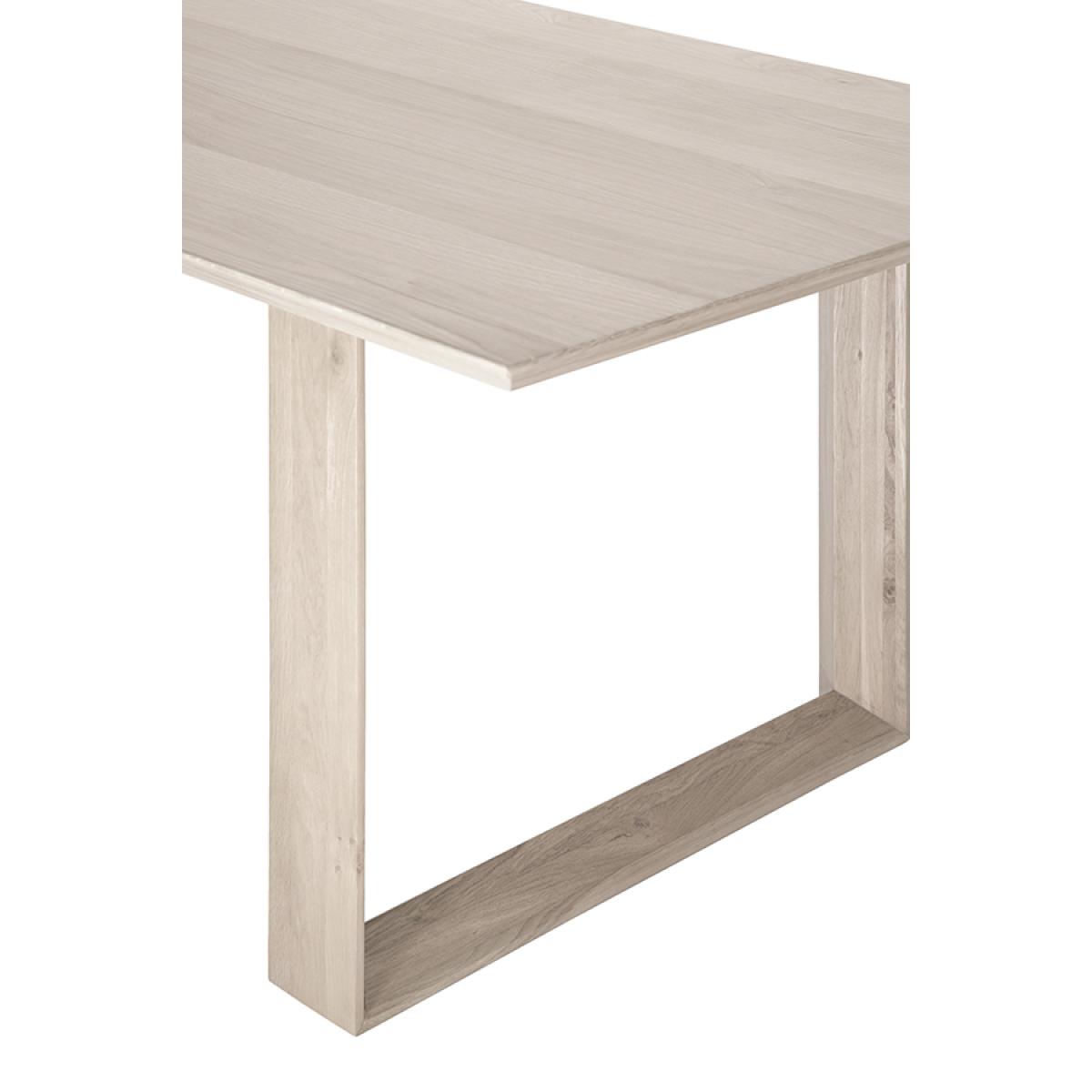 A handsome, practical and robust dining table designed for everyday family use. Solid oak and oak veneer with warm grey washed finish and tough matt PU lacquer. Dynamic 45-degree detailing. Generous proportions - will comfortably seat six people. Simple two-person assembly required.