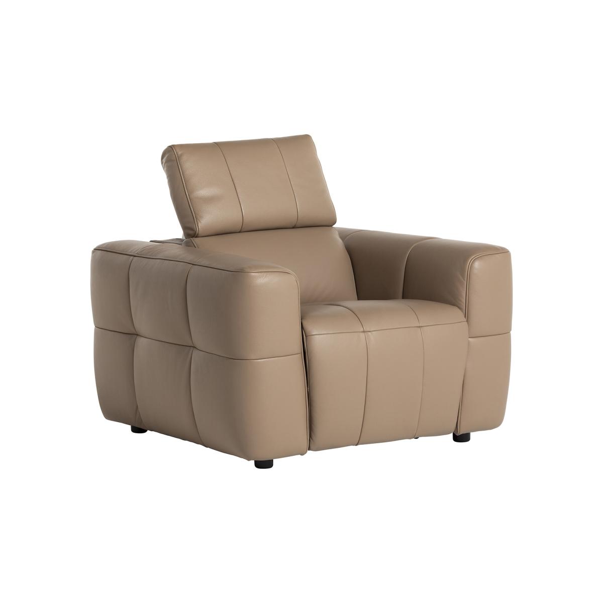Rochester Armchair Power Recliner with Head Tilt, Neutral Leather | Barker & Stonehouse