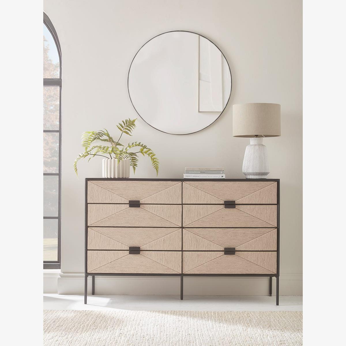 I love the Rockaway chest for its sleek, modern look that adds subtle texture with its geometric detailing. It works especially well in contemporary or Scandinavian-inspired interiors, but can also bring a touch of understated elegance to minimalist and industrial spaces. Practical styling tips include pairing it with brass or matte black accents for contrast, or layering with soft textiles and greenery to soften the overall look. Its wide design makes it ideal for use in bedrooms, living rooms, or even hallways, providing both storage and a stylish focal point. Keep the surrounding decor simple to let this piece shine or add contrasting colours and textures for a more eclectic vibe.