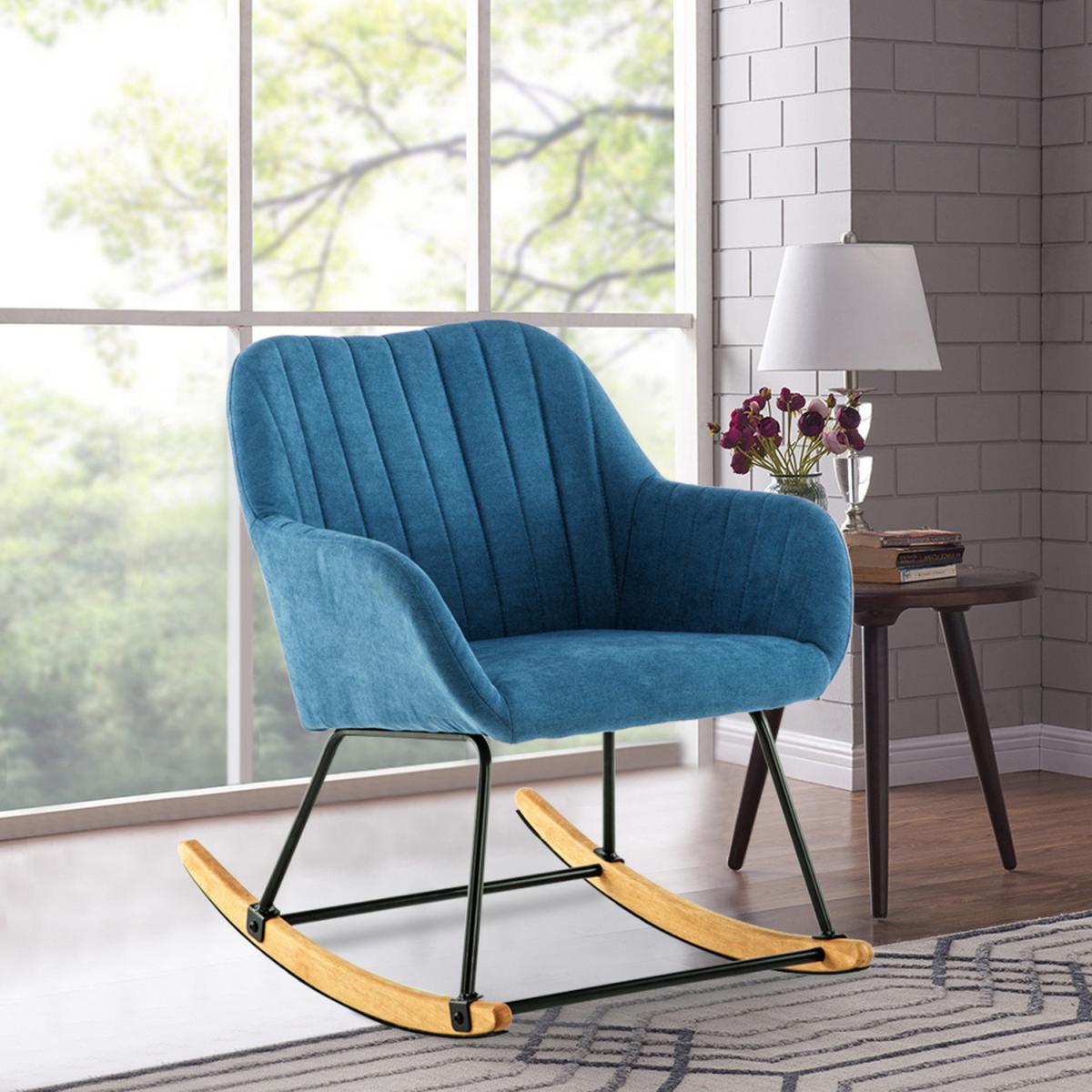 Rocking chair in modern design and the classic colour is a nice eye-catcher for your living house. Featuring a arc line contour wingback and armrest, both with vertical line for decoration, this rocker chair with the minimalist design will bring the charm of fashion and cosy space for your home or anywhere. What's more, it's upholstered in high quality fabric and filled with dense foam, which offer comfortable seating experience. Easy to Assemble - Simply fix the legs to the chair in a few easy steps.