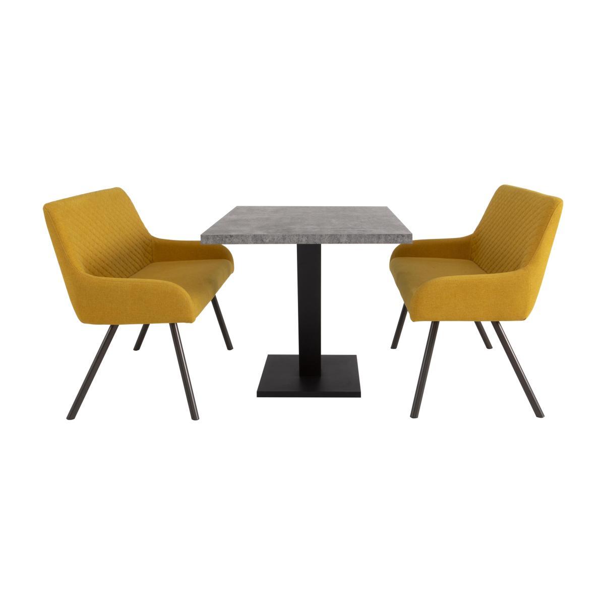 Bring cool retro style to your dining room or kitchen diner in the form of the Rocket range of dining chair and bar stool. Available in a choice of four modern colours, both the chair and the bar stool in this well-priced range have curved seats, supportive backs, quilted-effect upholstery and metal legs. The dining chair has pedestal-style splayed legs, while the bar stool features slender, gently tapered legs with a footrest at the front and sides. On trend style for contemporary homes. Cool and contemporary style at an incredible price. Concrete-effect top with dark grey powder-coated metal pedestal base. With 2 high back dining benches in fabric or faux leather. Bring home cool dining style with the Rocket dining table and 2 high back benches dining set – and an incredible-value price. With more than a touch of retro flair, this well-crafted set features a striking dining table with a durable concrete-effect top, hardwearing and heat-resistant, set on a V-shaped dark grey powder-coated pedestal base. Sturdy and practical, this dining table is perfect for everyday family living as well as more social occasions, and the choice of seating – two high back dining benches – gives it a designer look that’s sure to impress dinner guests and family members alike. Dining benches provide versatile seating, and these are great examples. Wonderfully comfortable, they feature gently retro curves, well-cushioned seats and backs, slender dark grey metal legs and beautiful upholstery that’s embellished with diamond-patterned quilted-effect stitching. Choose either grey faux leather or soft fabric in one of four stunning shades for both benches. The Rocket dining table and 2 high back benches dining set is part of the great-value Rocket dining collection, a range of dining sets with a wide choice of seating options. Please note:. The finish of each concrete-effect table top will display variations and unique markings. This should not be considered a fault. While hard-wearing, this finish is not completely heat resistant. Be sure to use coasters and placemats at all times.