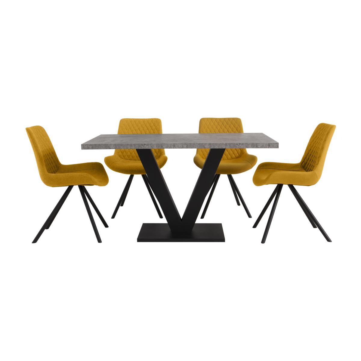 I love this set because it combines sleek modern design with practical functionality. The table's clean lines and sturdy base make it versatile enough to suit contemporary or minimalist interiors, while the mustard chairs add a vibrant pop of colour that can also work well in mid-century or eclectic spaces. For styling tips, consider pairing it with soft textured placemats or a centrepiece in natural materials like wood or stone to balance the bold colours. It works particularly well in open-plan kitchens or dining areas that need a statement piece without overwhelming the space. To keep the look fresh, try layering with some colourful or patterned textiles in the surrounding area, or add a statement pendant light overhead.