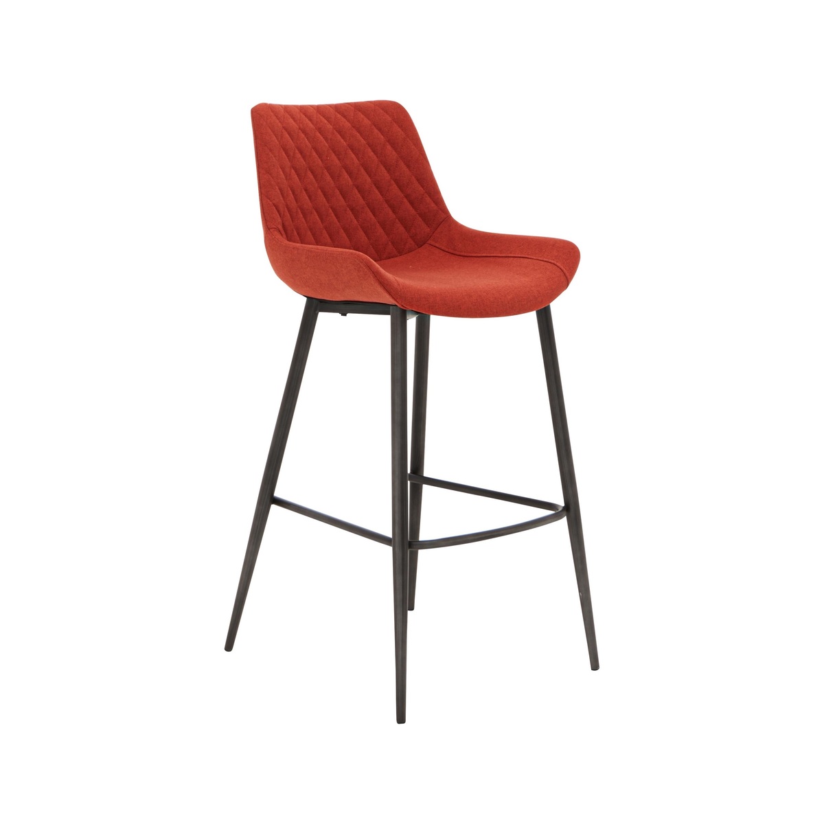 Bring cool retro style to your dining room or kitchen diner in the form of the Rocket range of dining chair and bar stool. Available in a choice of four modern colours, both the chair and the bar stool in this well-priced range have curved seats, supportive backs, quilted-effect upholstery and metal legs. The dining chair has pedestal-style splayed legs, while the bar stool features slender, gently tapered legs with a footrest at the front and sides. On trend style for contemporary homes. Contemporary retro-style bar stools with gently curved seats. Quilted-effect upholstery in a choice of bold modern colours. Slender legs made of metal. Cool and contemporary, the fantastic-value pair of Rocket bar stools combines comfortable seating with stylish design. These modern bar stools have more than a hint of retro charm in the curved seats and low backs. Nicely padded and upholstered in a soft high-quality fabric, they’re exceptionally comfortable too – and the perfect choice for a bar table or countertop in an on trend kitchen diner. The upholstery is available in a choice of vibrant yet sophisticated shades as well as ever-fashionable go-with-anything grey and is accentuated with diamond-patterned quilted-effect stitching on the inside backs and simple seaming on the seats. Slender metal legs are connected on three sides with a useful footrest designed to ensure the sitter’s comfort. Team the pair of Rocket bar stools with a concrete- or ceramic-topped bar table for a cool urban look, or opt for a rustic wood, industrial-style bar table. The pair of Rocket bar stools is part of the Rocket range which also includes the pair of Rocket dining chairs.