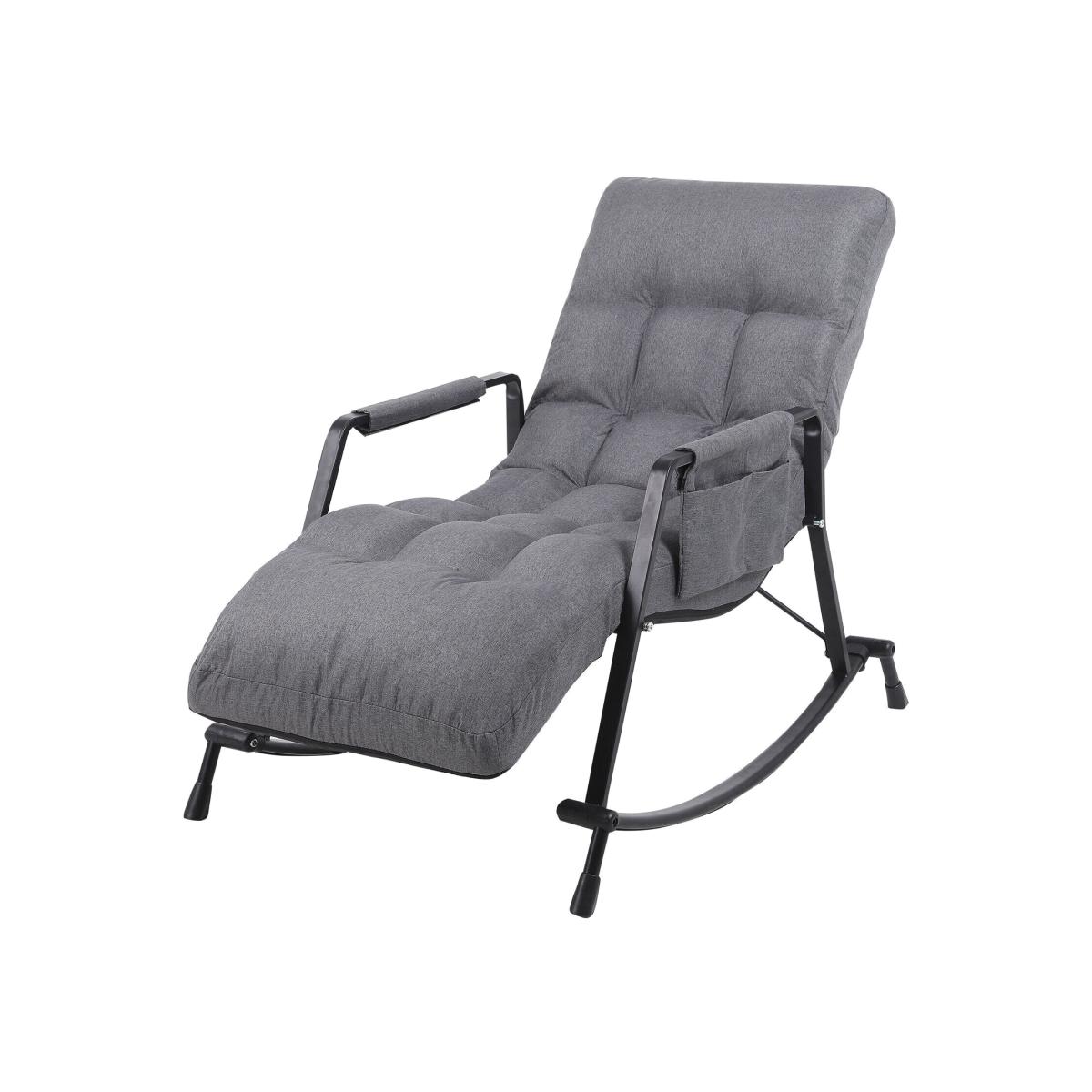 Rocking Chair Chaise Lounge Adjustable Recliner Chair with Side Pocket - Grey
