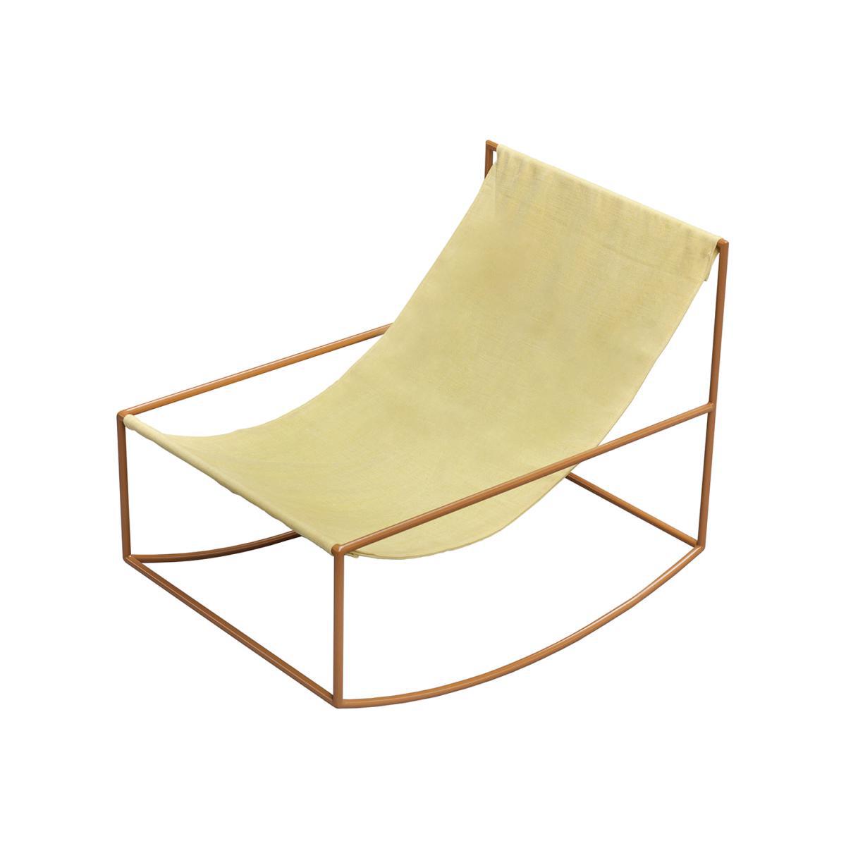 Known as Muller Van Severen, the Flemish design duo Fien Muller and Hannes Van Severen work at the intersection of art and design. They are among the most prominent creators of the moment. From galleries to museums, not to mention collectors, design enthusiasts and design houses, everyone loves their minimalist, colourful furniture, timeless and joyful. In less than a decade, Muller Van Severen has become a key player in design, to the point of winning numerous awards and increasing collaborations with prestigious museums (Pompidou Centre, Vitra museum, etc. ). It was in 2012 that the creative duo initiated this collection of seats. That year, they were chosen to mount an exhibition at the Kortrijk Interieur Biennale. As the space where the event was held had no seats, the designers decided to remedy this by creating a collection of seats with a simple basic concept: stretch a piece of cloth between two steel bars. This incredible rocking chair, inspired by the lounge chair, allows for gentle relaxation. This rocking chair is characterised by its graphic design: this piece of furniture that plays with transparency is imbued with great visual lightness. It oscillates in space without ever covering up the background. It doesn’t interrupt your space or impose with its presence, and can fit into any decor. A clever blend of sobriety and originality, it offers the maximum effect with a minimum of substance. This rocking chair consists of an extremely thin and airy steel structure on which a flexible, fluid canvas is suspended (in leather or linen), which seems to float. The rocking chair comes in pretty colour combinations. A true invitation to relax, the flexibility of the suspended canvas leaves plenty of room for comfort. You feel like you’re in a hammock! This armchair is ideal for setting up a relaxation area in a living room, office, reading room. Fien Muller and Hannes Van Severen, ex-sculptor and ex-photographer respectively, infuse each of their pieces with a touch of poetry. Hannes explains: “Design is linked to function. We come from the visual arts. So we’re just trying to create sculptural furniture to occupy space. Art or design, creation takes place the same way … and provides the same satisfaction. Poetry is possible even in the industrial”, concludes Fien.