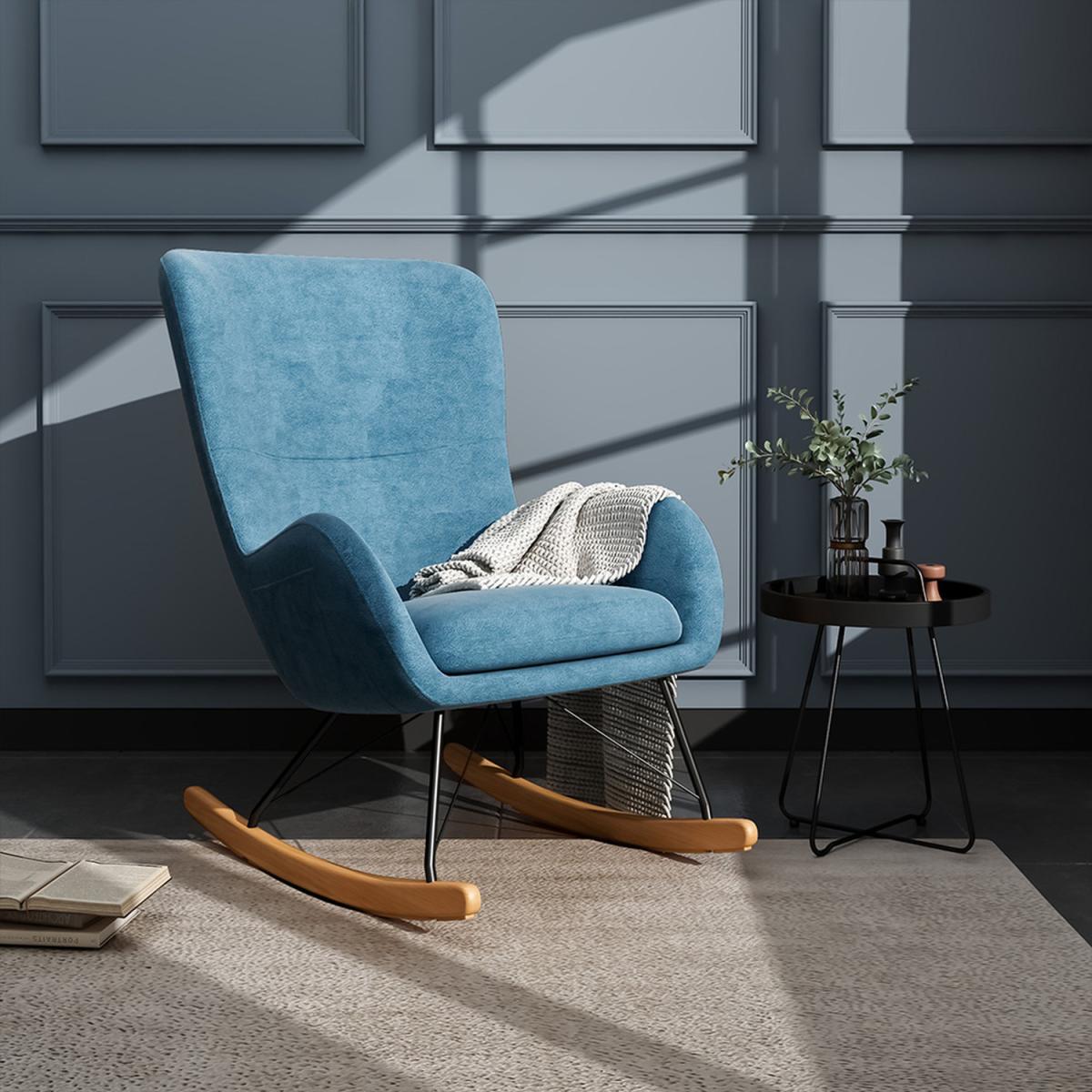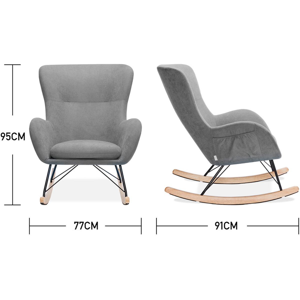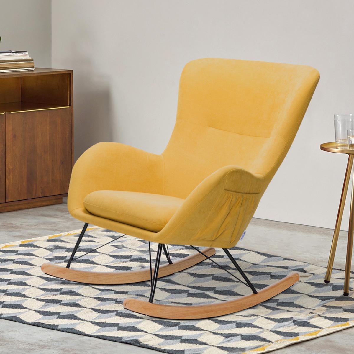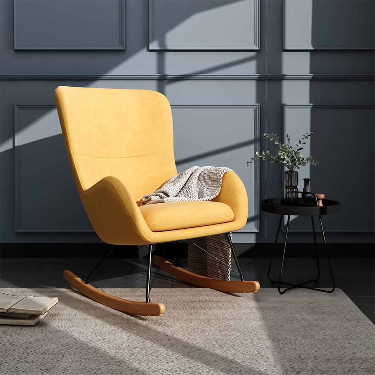 The classic rocking chair is given a modern update in this stylish design, which features a curved high wingback with armrest and a line sew on the back to increase stylish feeling. It's made of high quality fabric upholstery and high density foam filling, which make it soft to touch but not easy to wrinkle. Whether the little ones or the older ones, everyone will love to sitting and rocking on the chair. Easy to Assemble - Simply fix the legs to the chair in a few easy steps.
