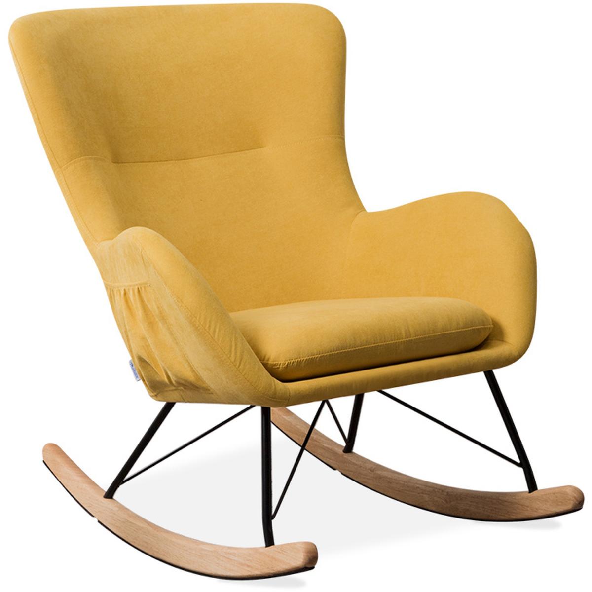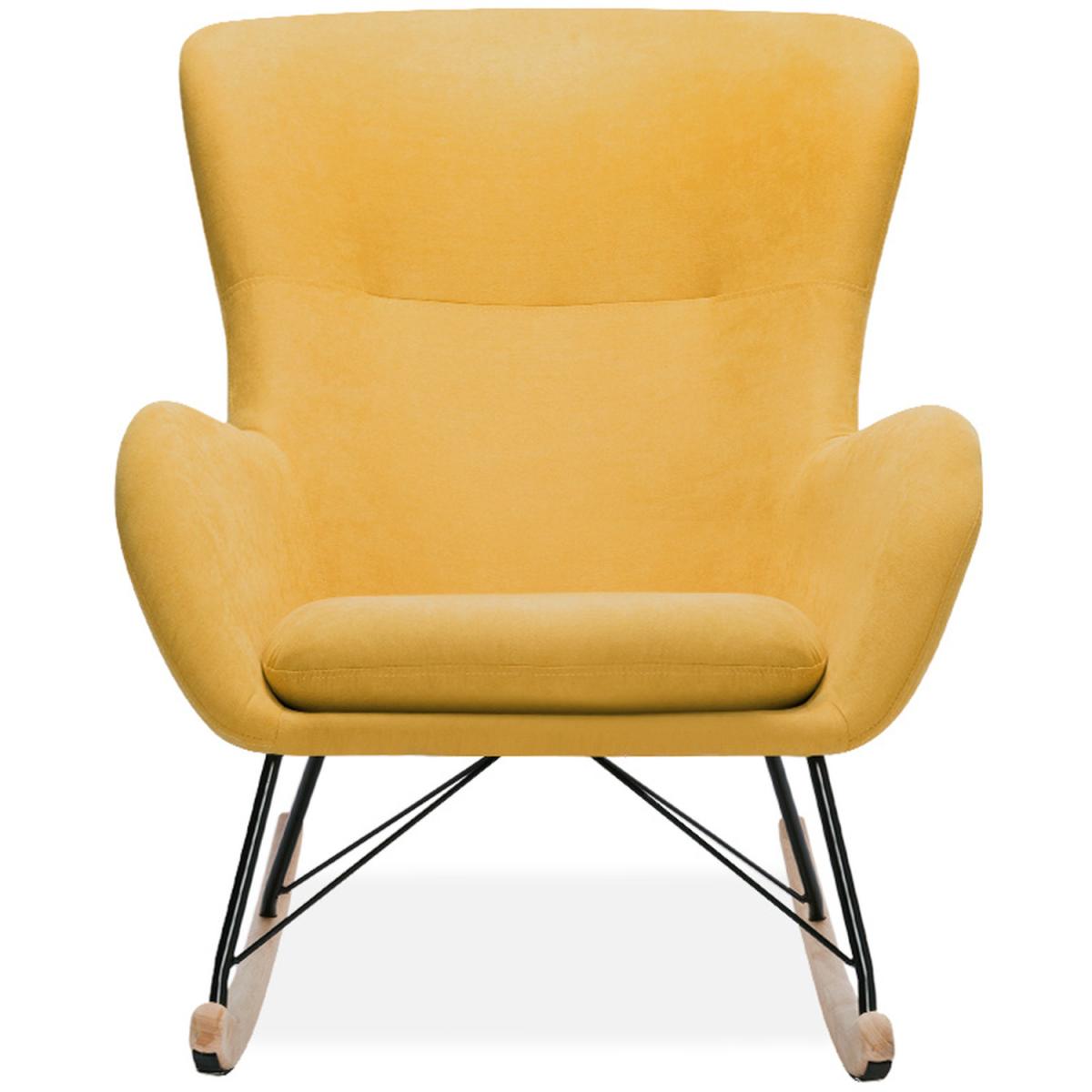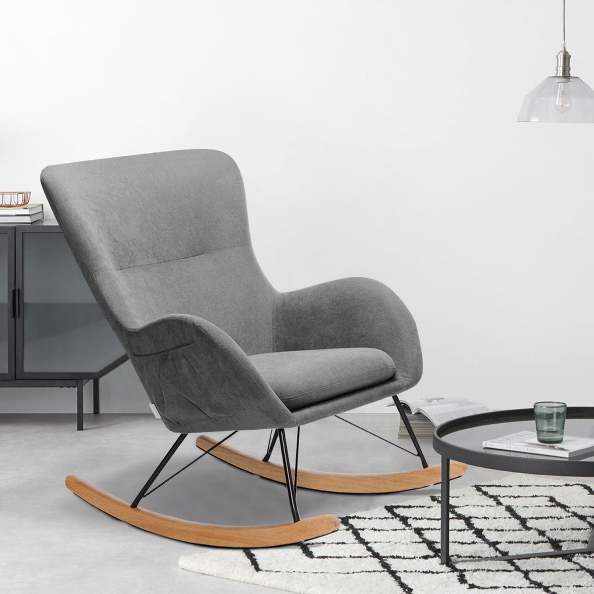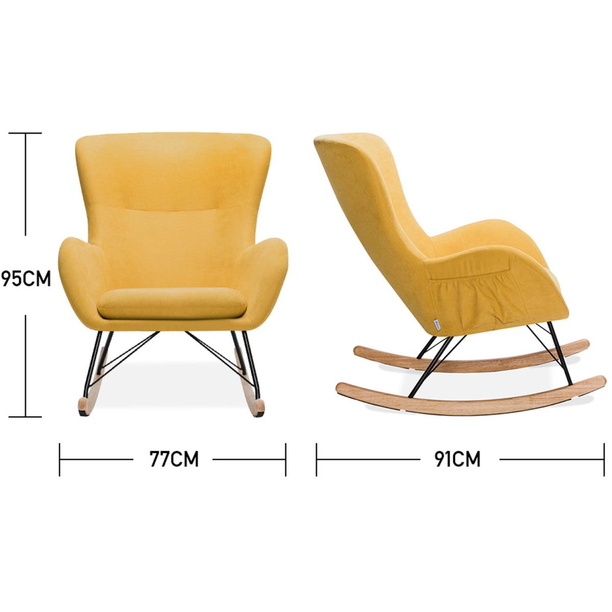 The classic rocking chair is given a modern update in this stylish design, which features a curved high wingback with armrest and a line sew on the back to increase stylish feeling. It's made of high quality fabric upholstery and high density foam filling, which make it soft to touch but not easy to wrinkle. Whether the little ones or the older ones, everyone will love to sitting and rocking on the chair. Easy to Assemble - Simply fix the legs to the chair in a few easy steps.