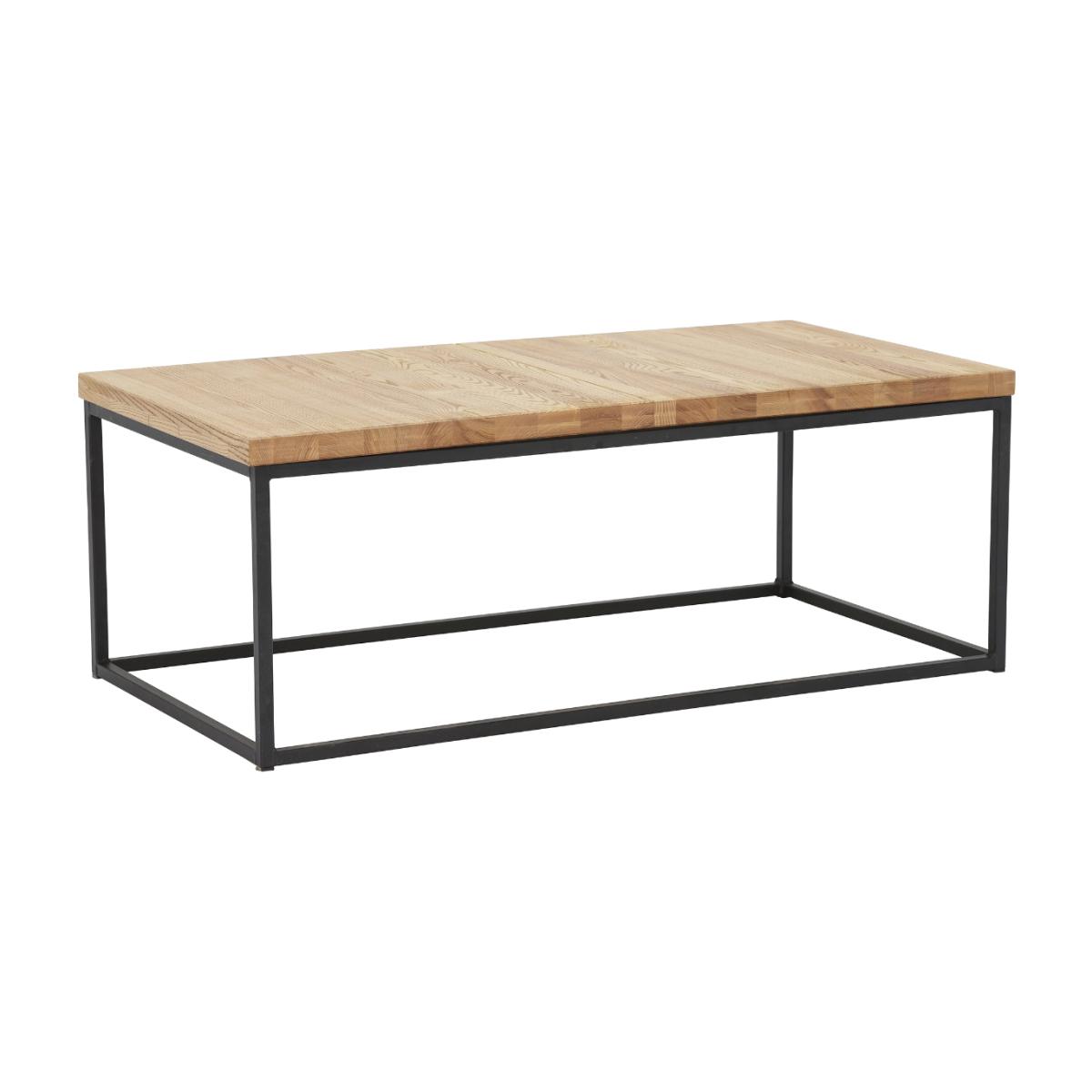 Rockingham Coffee Table Beautifully showcasing a central natural block wood design feature, the stunning Rockingham Coffee Table has a charming two tone look thanks to contrasting direction of grain and complementary wood tones. Angular metal legs offer a Rockingham Coffee Table, Neutral Wood | Barker & Stonehouse
