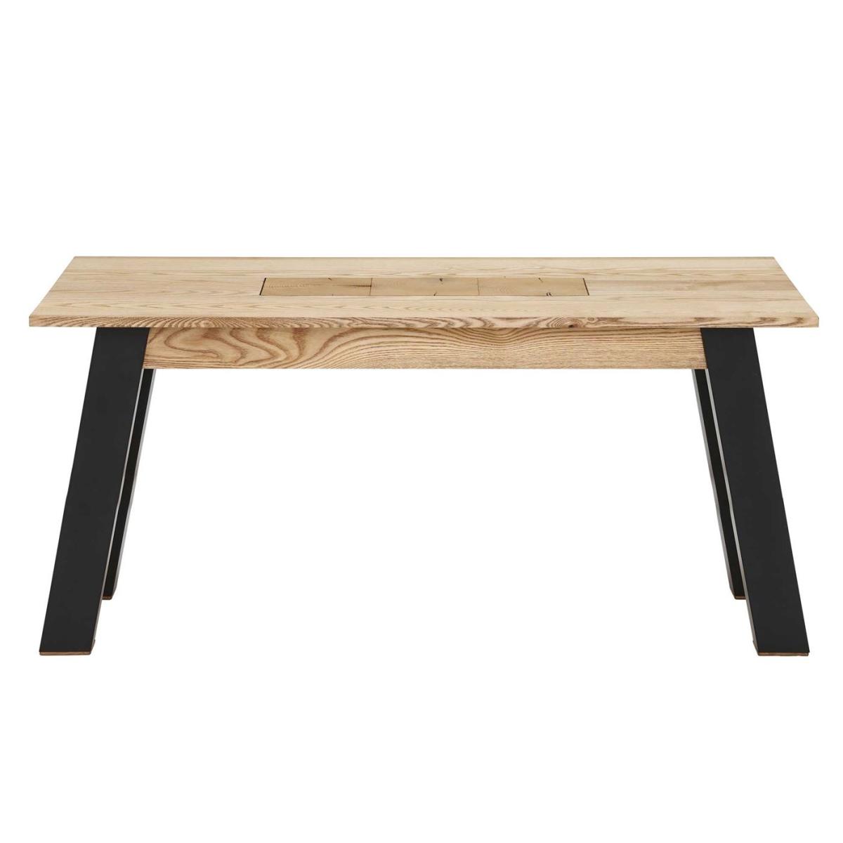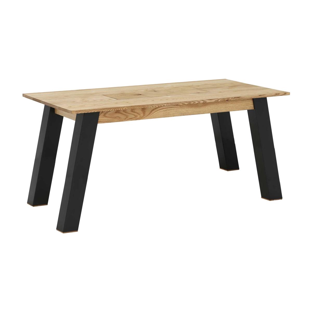 Design. Combining the rustic charm of a natural wooden top with the sleek modernity of black metal legs, our Rockingham dining table is highly adaptable. It feels comfortably at home within a wide range of interior schemes, whether styled with sophisticated leather chairs or industrial wooden benches. Featuring a unique blockwork design at its centre, this beautiful ash dining table will give your dining room a distinctive edge.